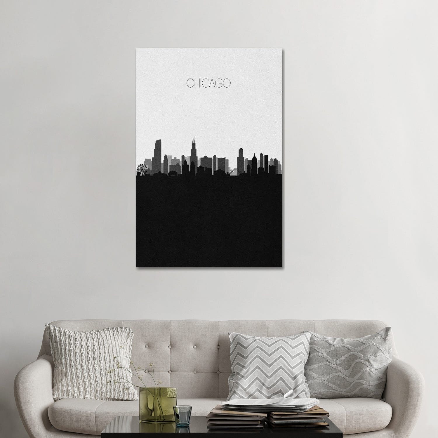 iCanvas "Chicago Skyline Monochrome" by Melanie Viola Framed Canvas Print