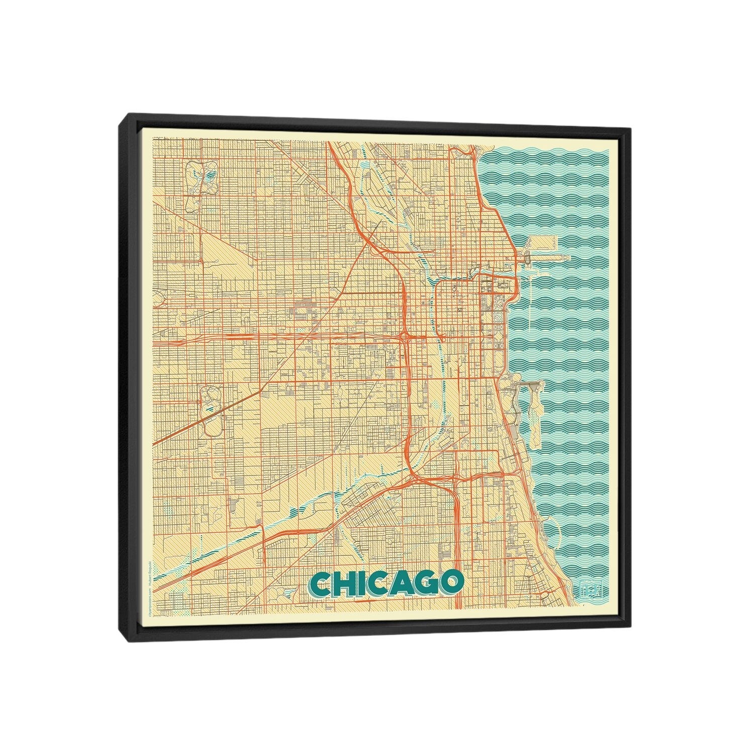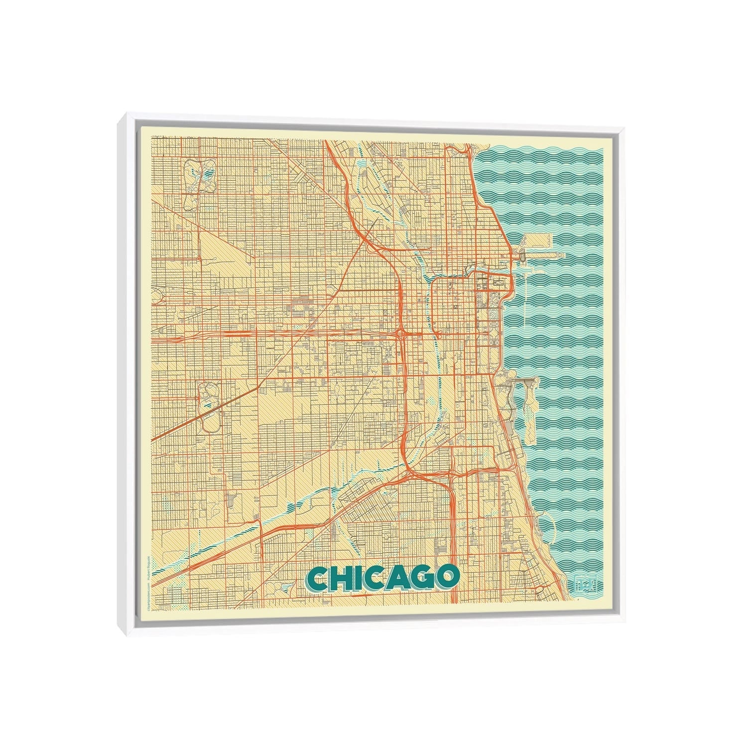 iCanvas "Modern Map of Chicago" by Nikki Galapon Framed Canvas Print