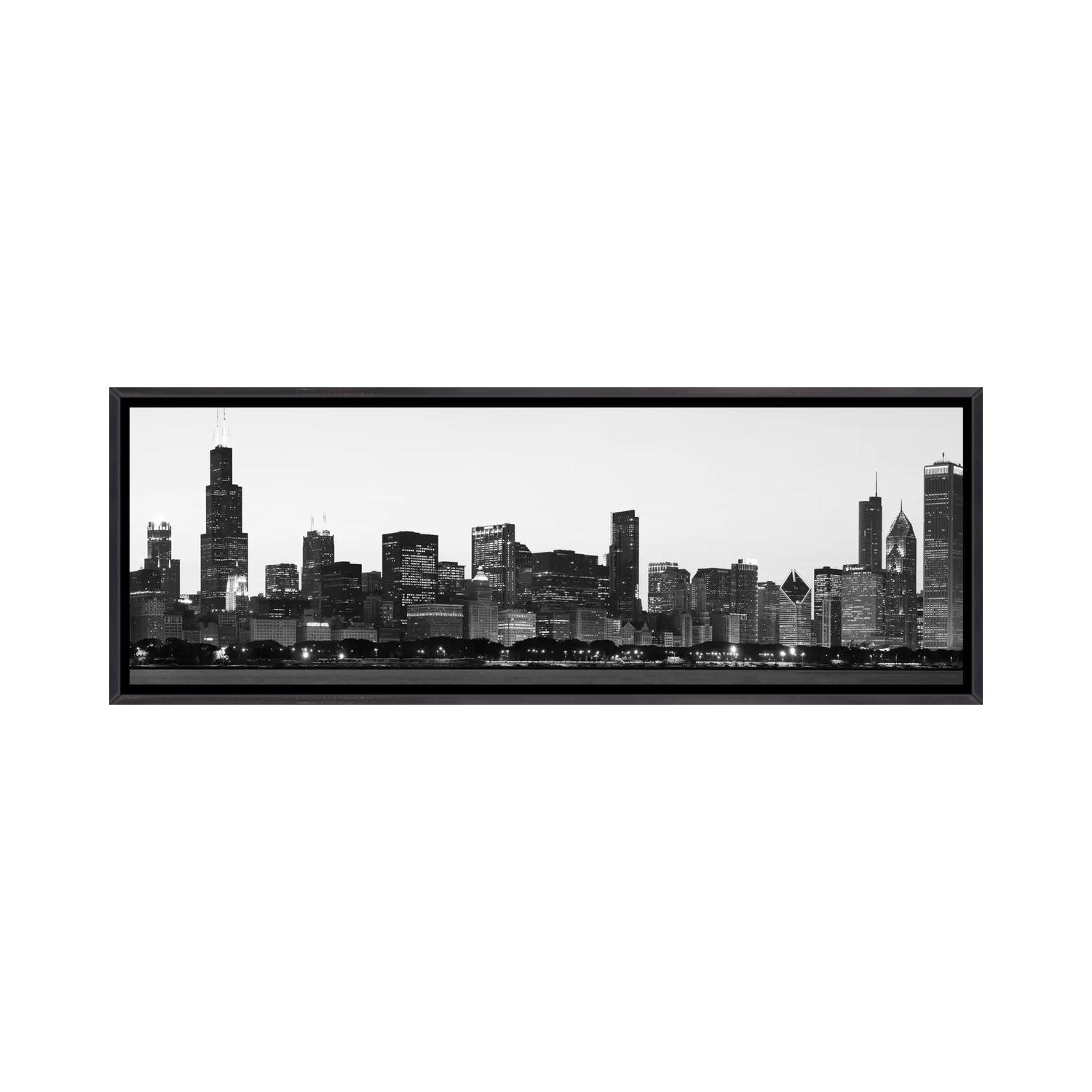 iCanvas "Chicago Panoramic Skyline Cityscape (Black & White - Dusk)" by Unknown Artist Framed