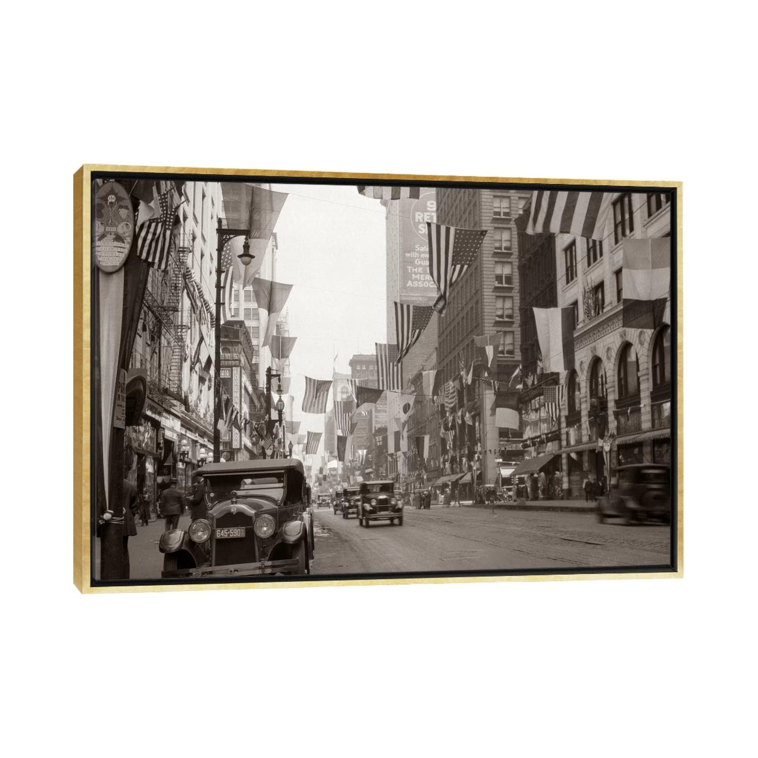 iCanvas "1926 Downtown Chicago State Street With American And Other National Flags" by Vintage Images Framed Canvas Print