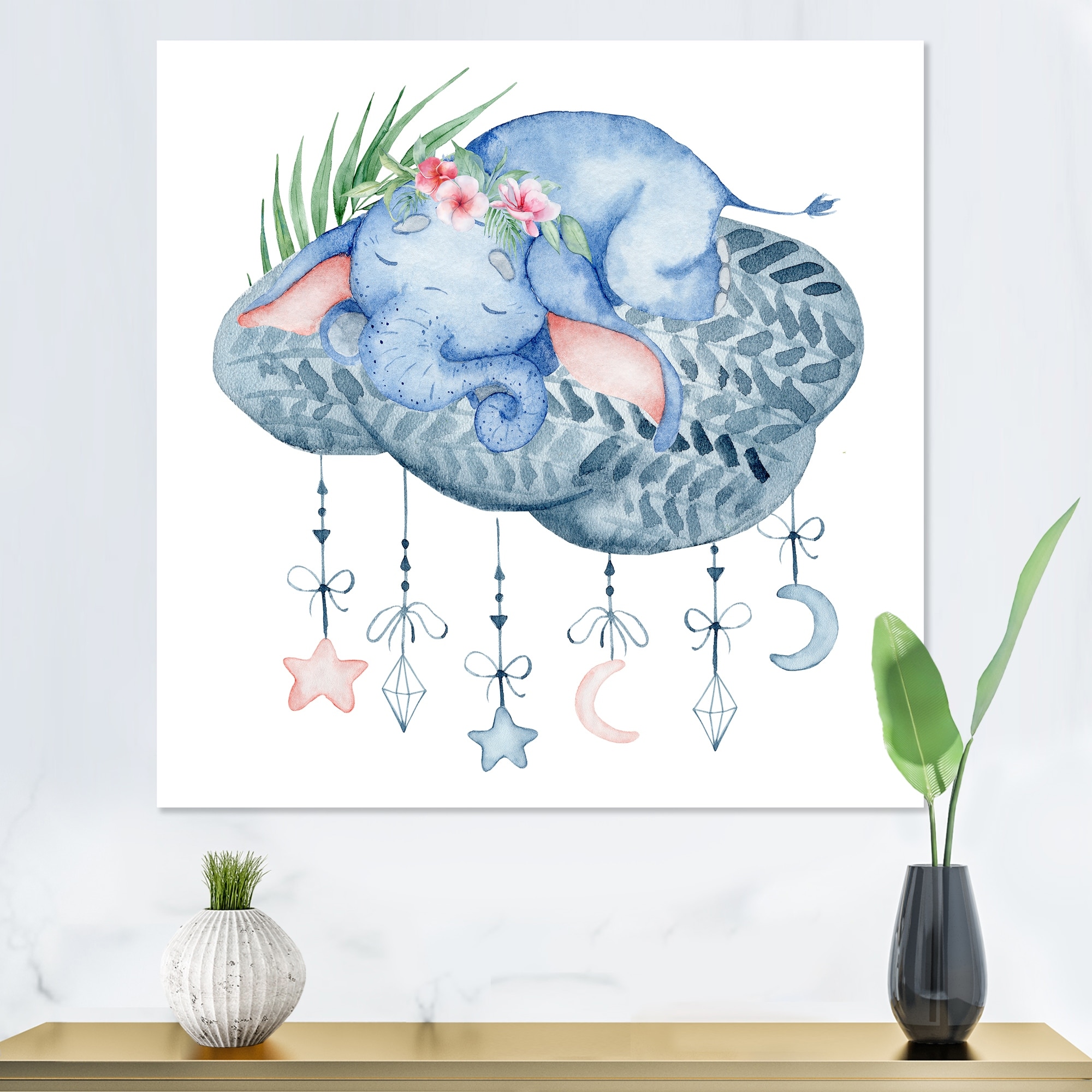 Designart "Cute Elephant Sleeping" Children's Art Canvas artwork