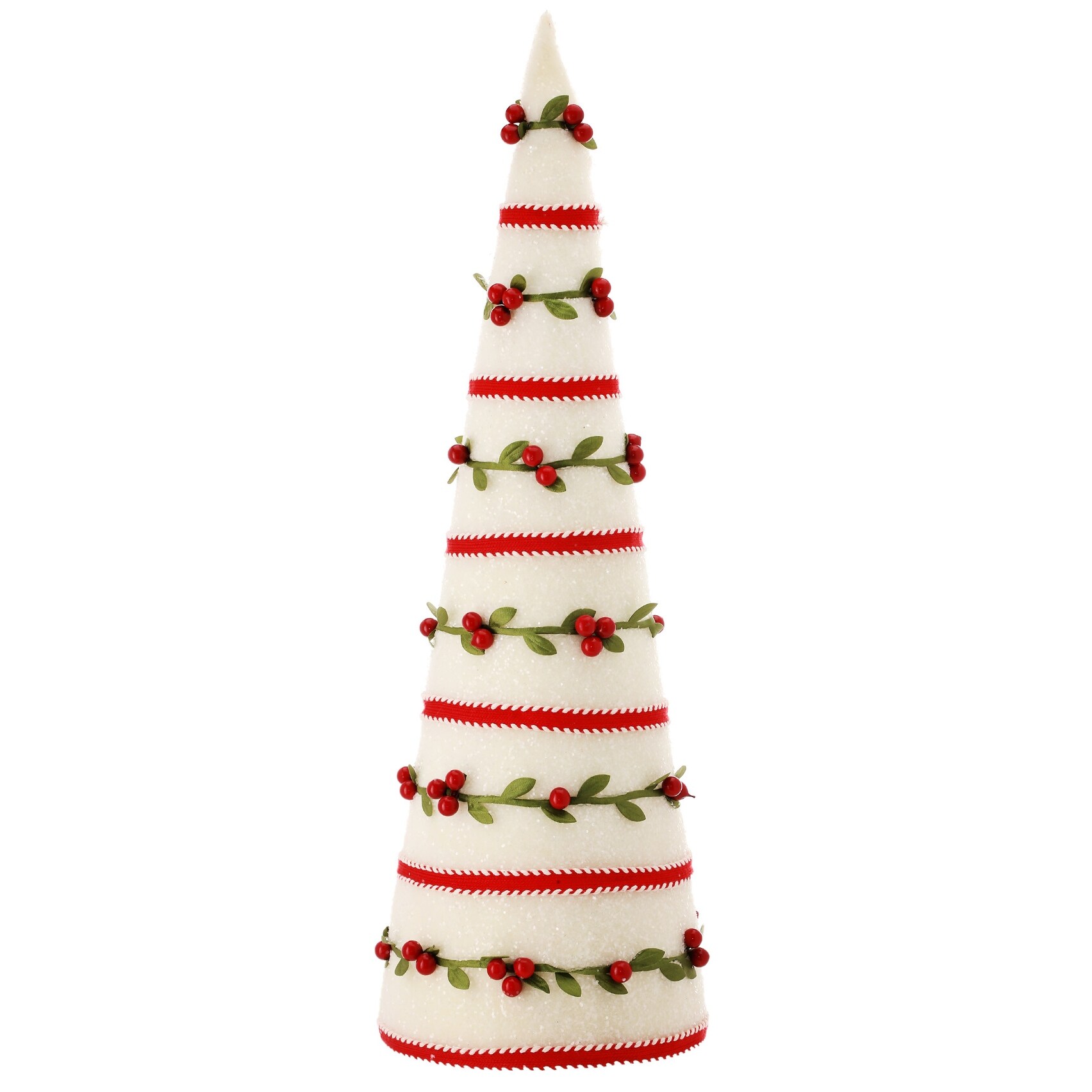 18" White and Red Berry Vine Frosted Christmas Cone Tree