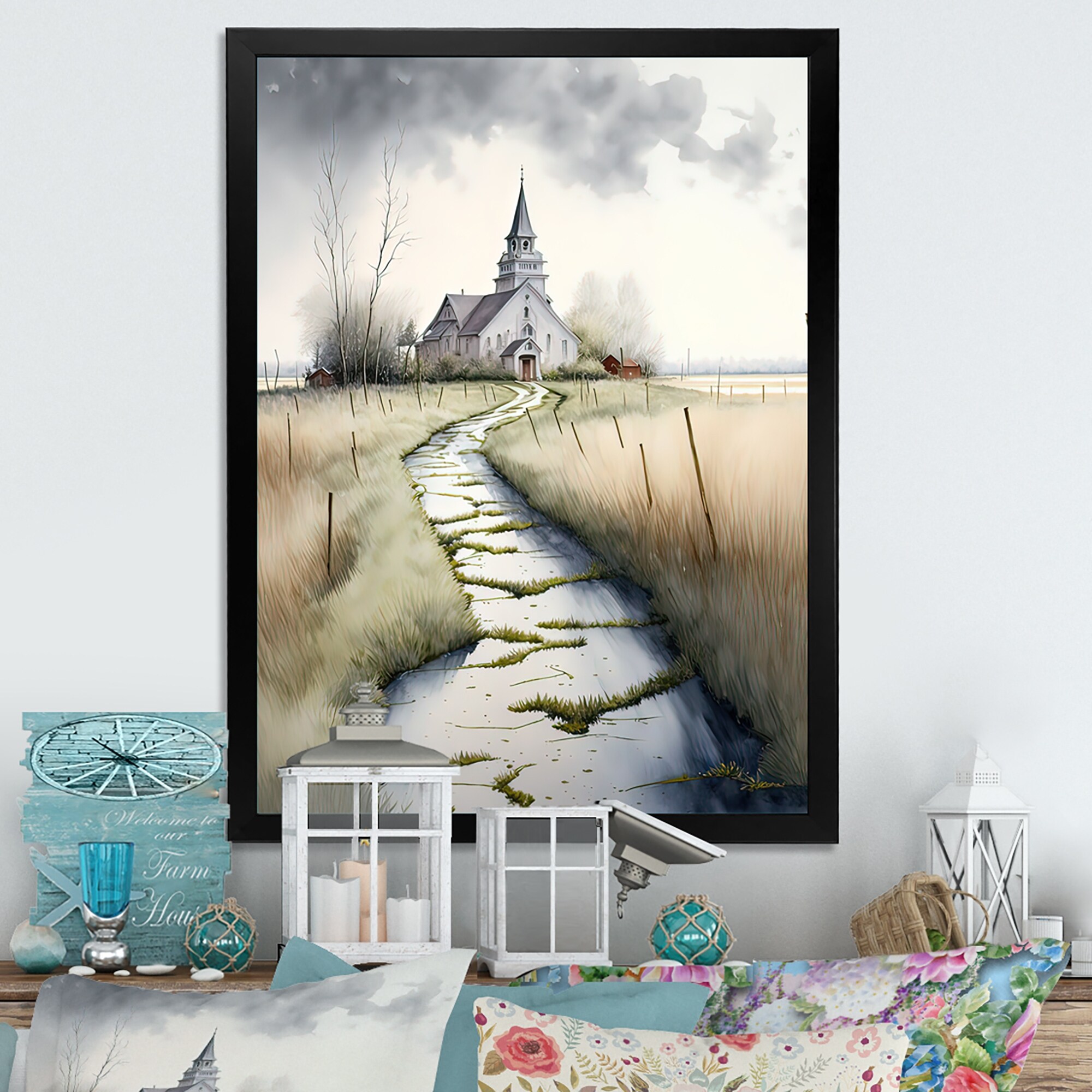 Designart "Winding Path to Church IV" Spiritual Framed Art Print