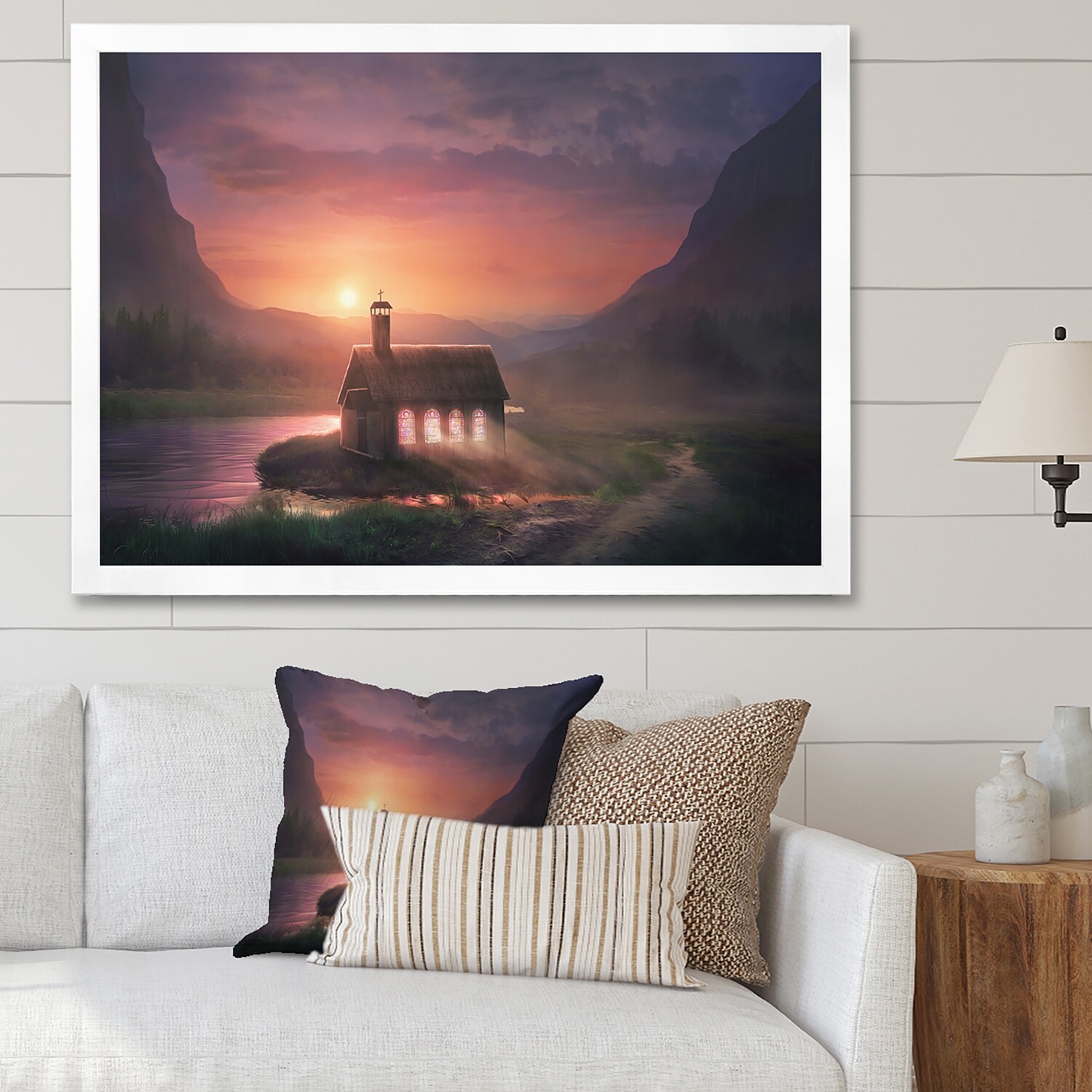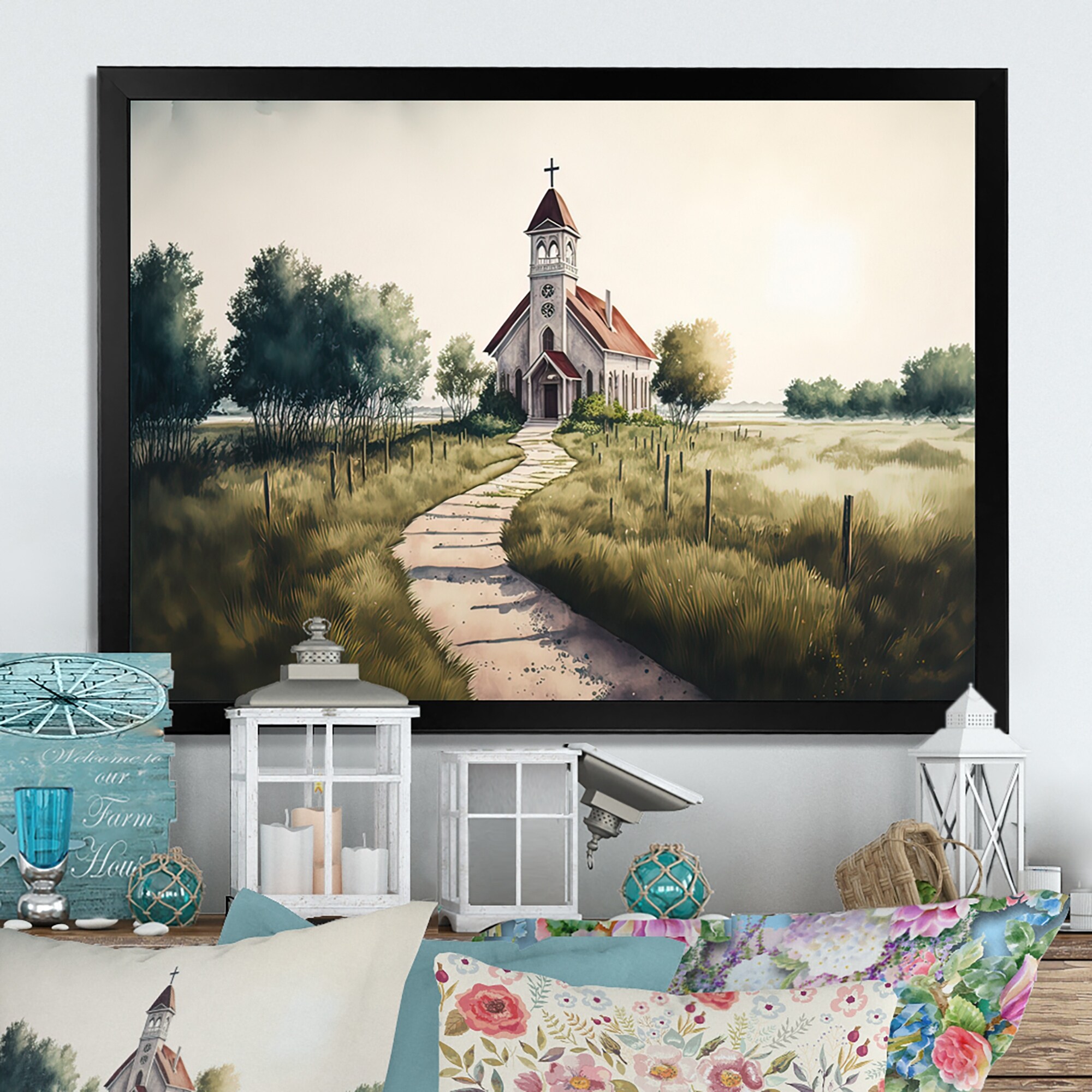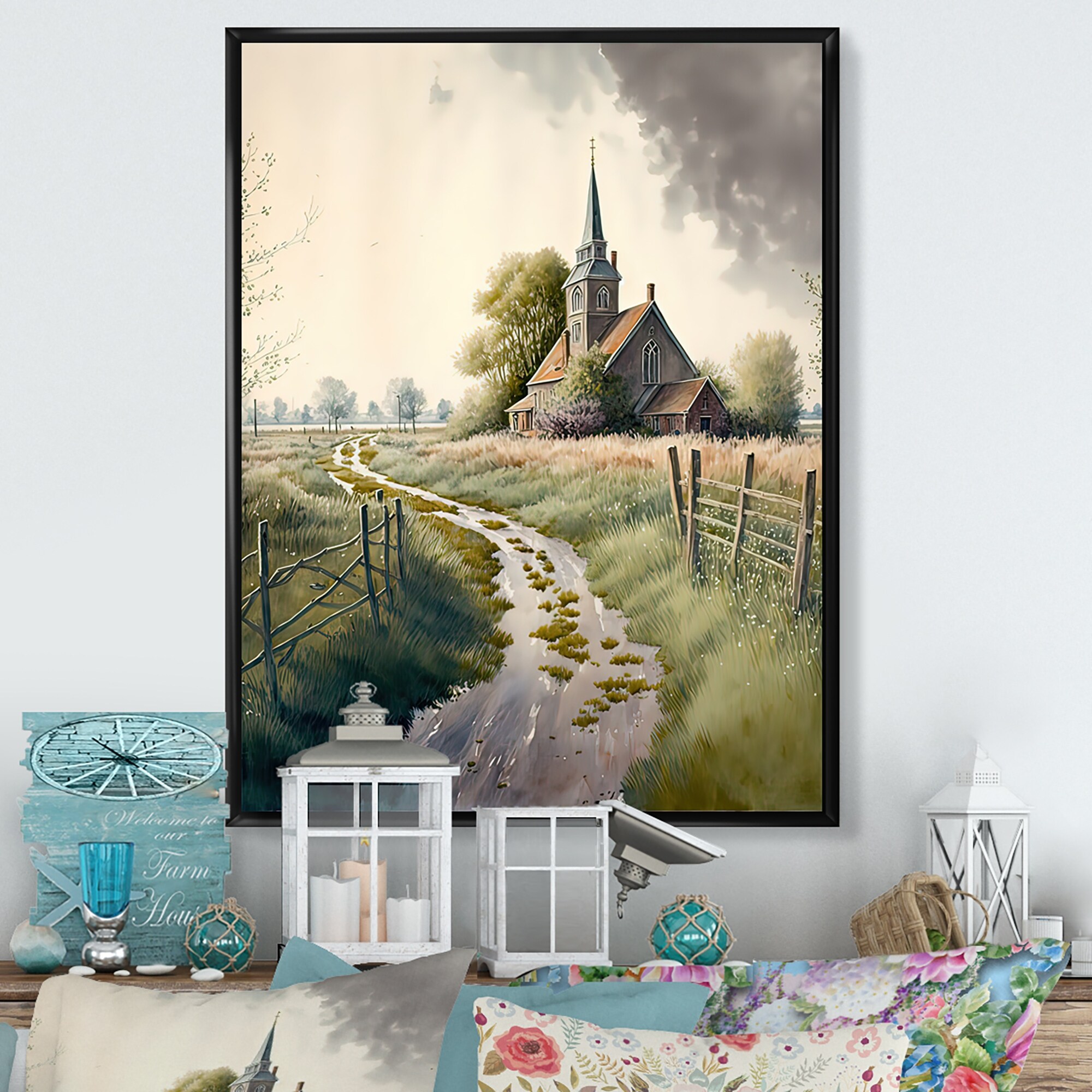 Designart "Church In Country Town VI" Spiritual Framed Art Print