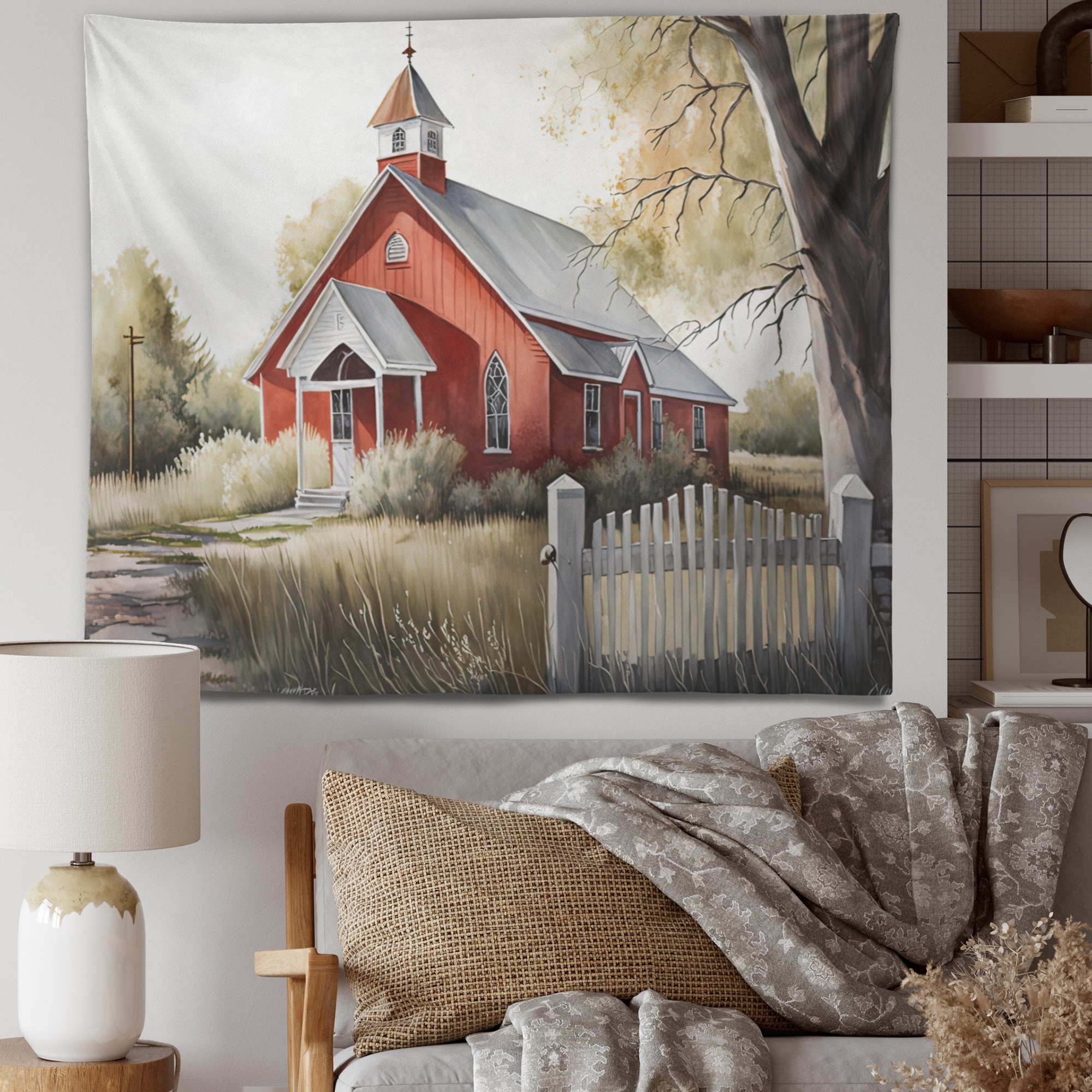 Designart 'Church In Country Town VI' Landscape Church Wall Tapestry