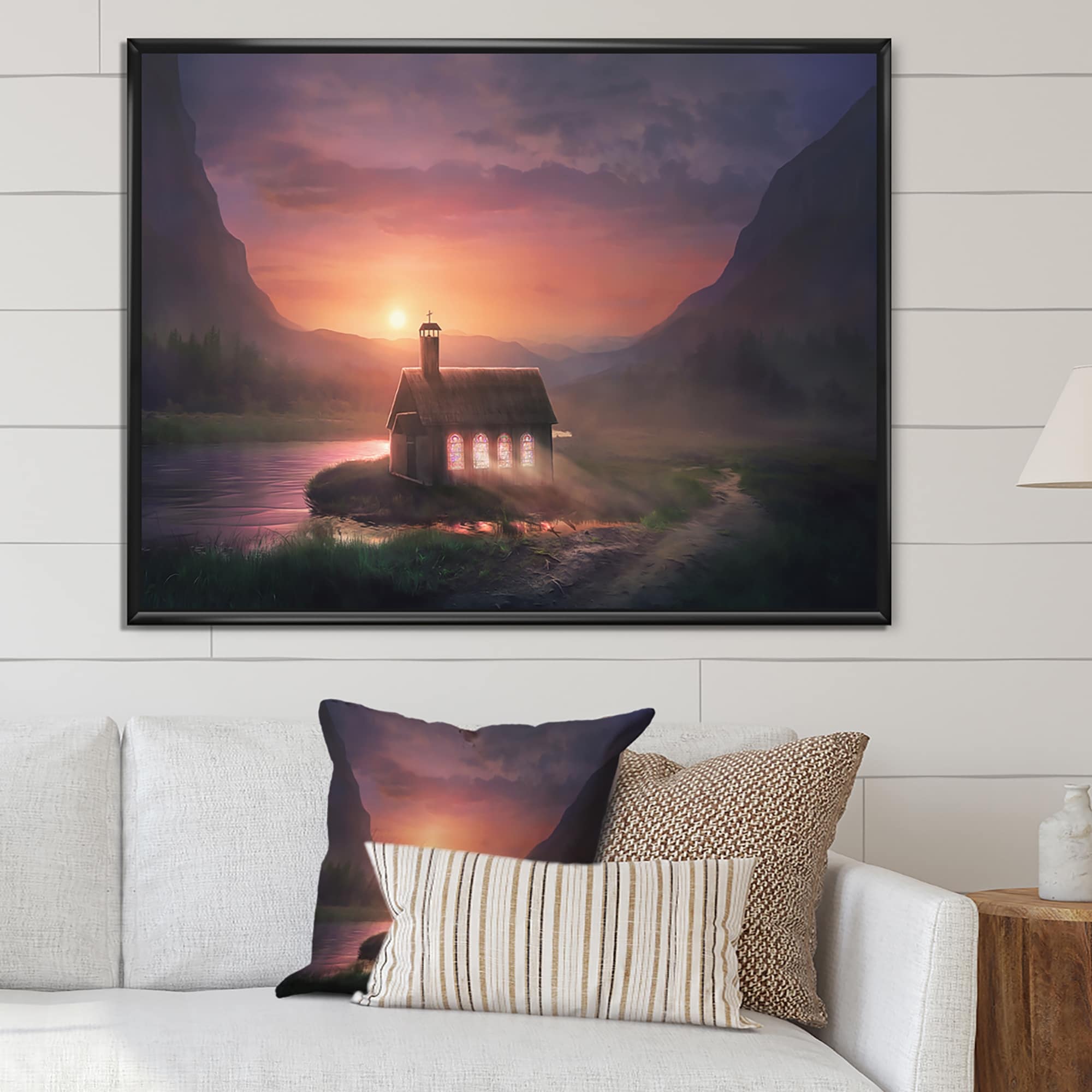 Designart "Christian Church Has Lights Shining" Traditional Framed Canvas Wall Art