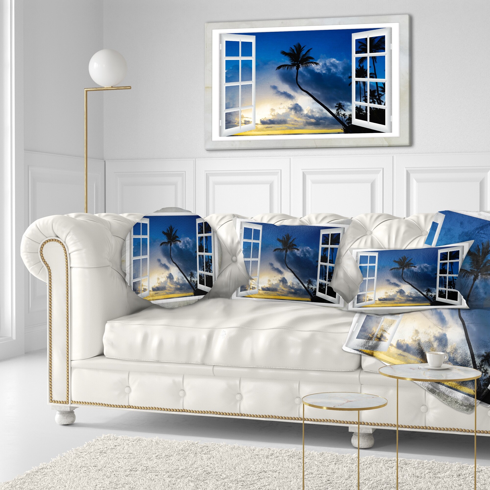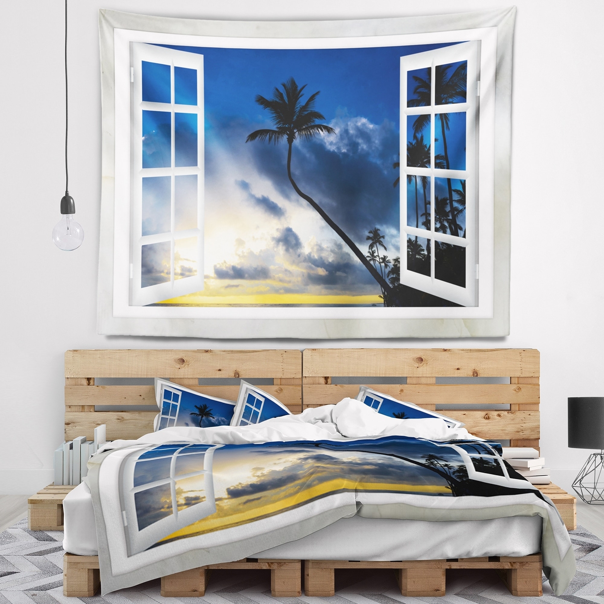 Designart 'Window to Beach with Coconut Palms' Landscape Wall Tapestry