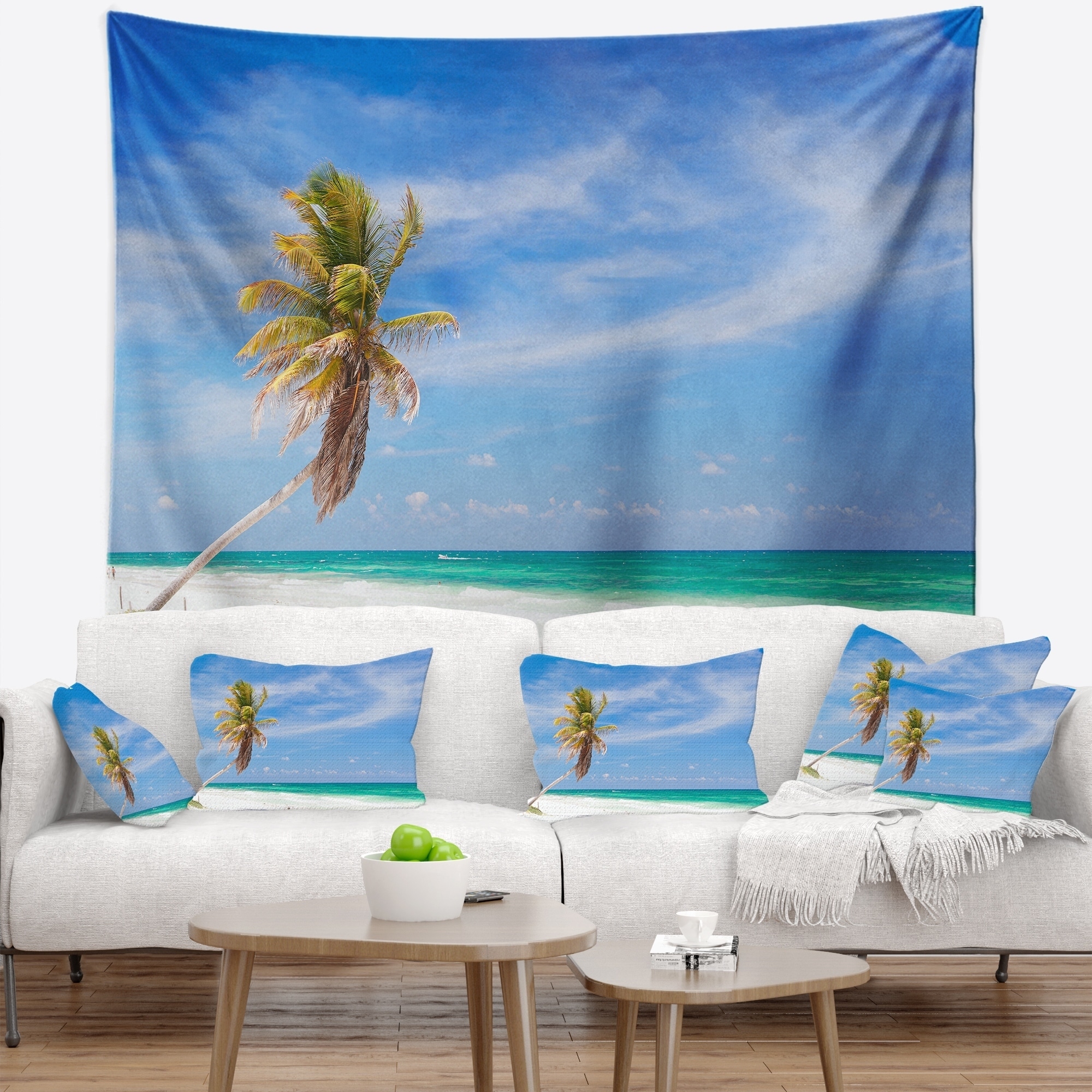 Designart 'Solitary Coconut Palm at Beach' Seashore Photo Wall Tapestry