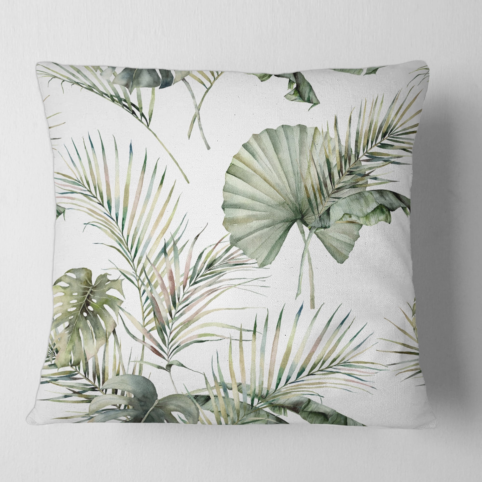 Designart 'Tropical S Pattern With Monstera & Coconut Leaves' Traditional Printed Throw Pillow