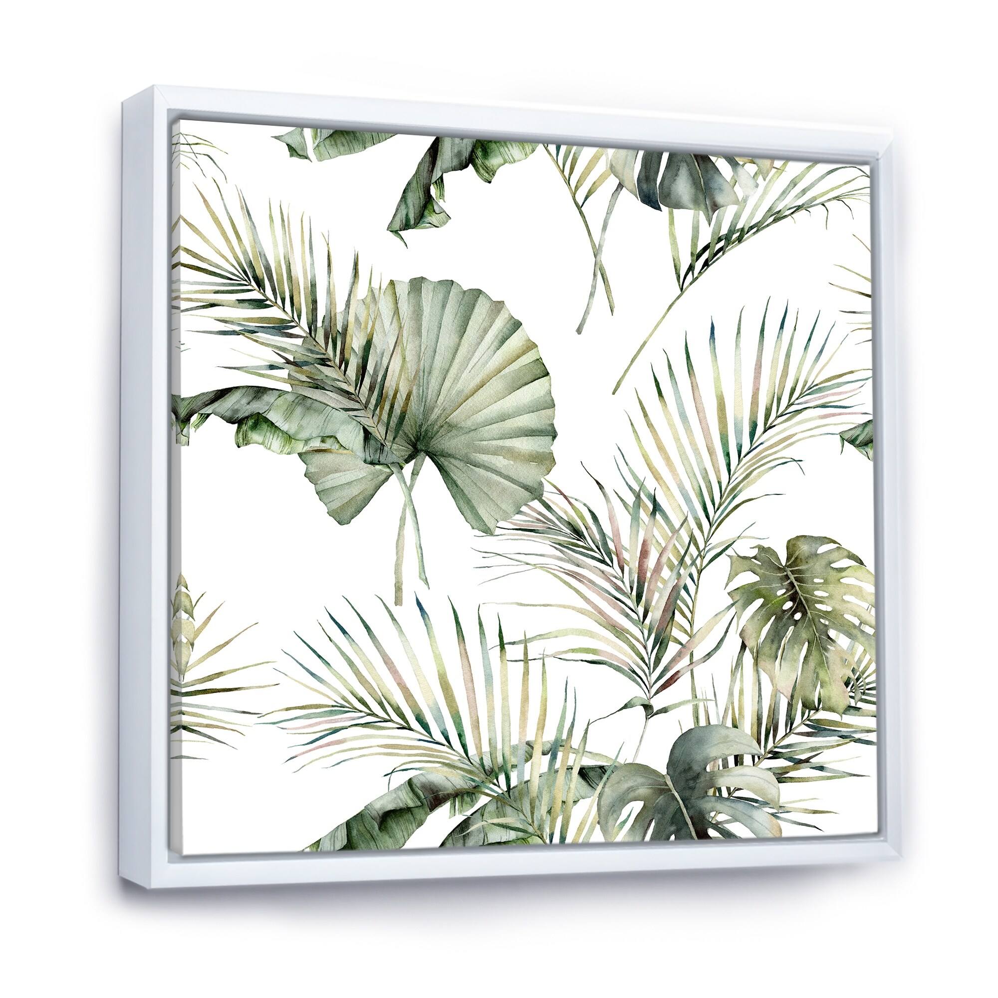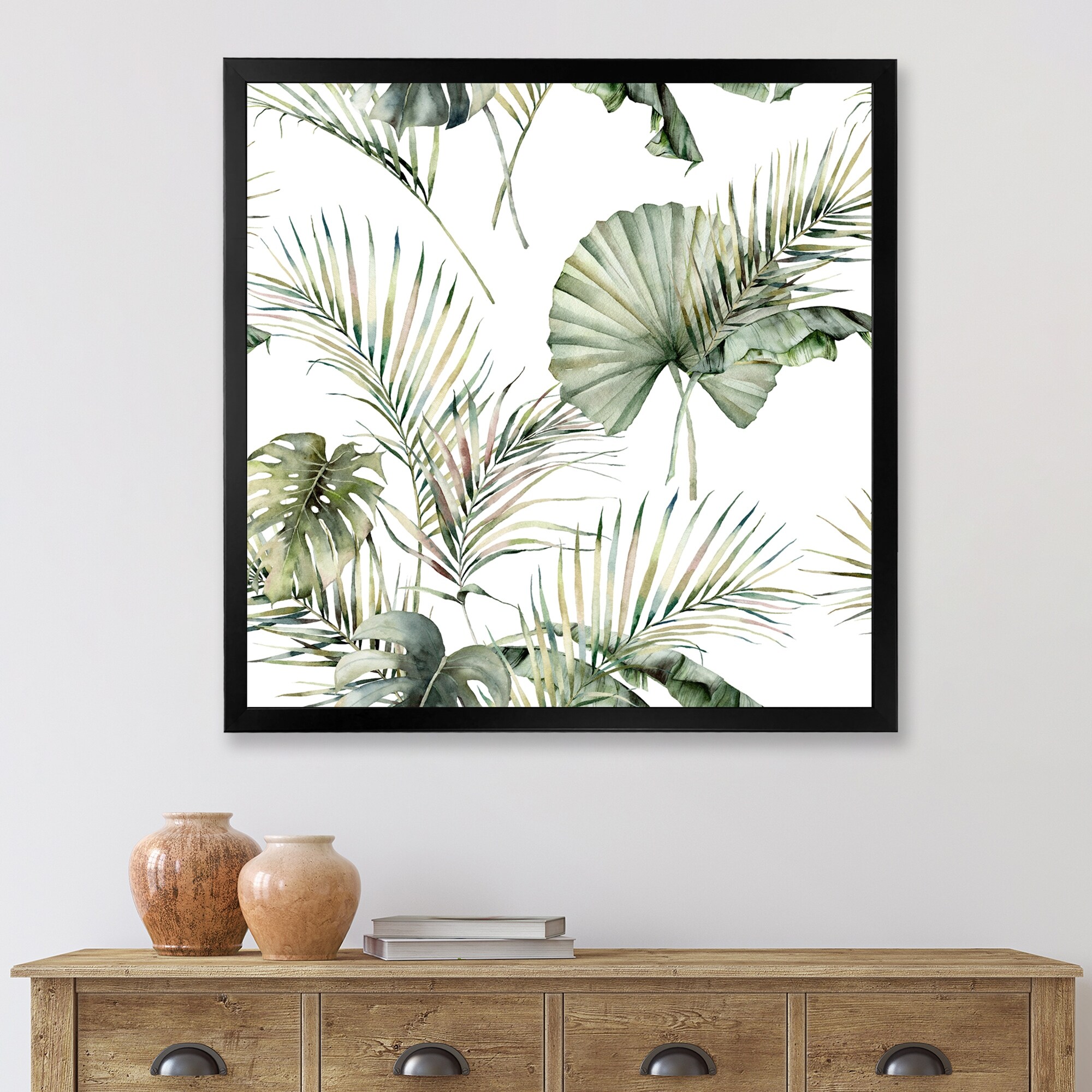 Designart "Tropical S Pattern With Monstera & Coconut Leaves" Traditional Framed Canvas Wall Art Print