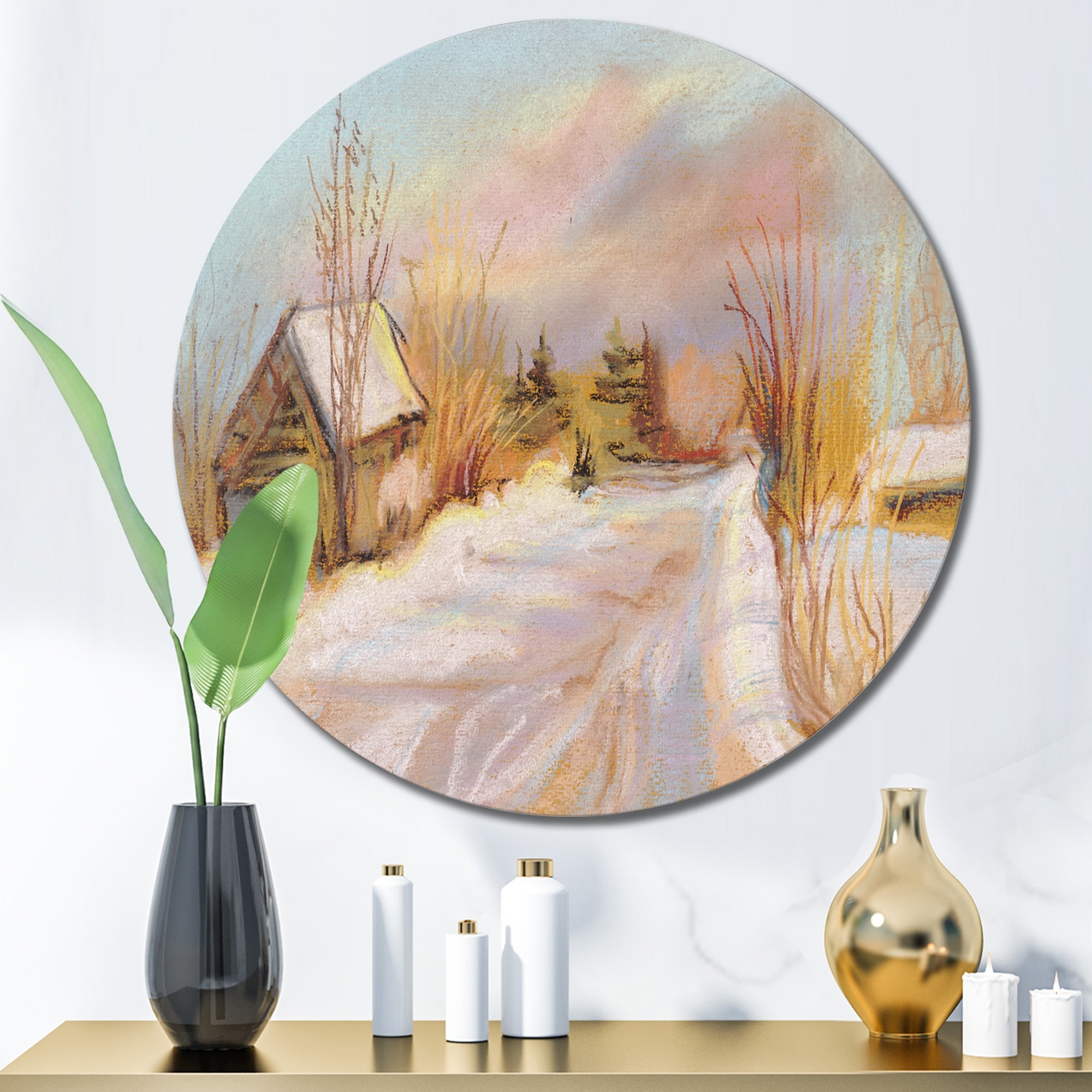 Designart 'Cold Rural Winter Day' Country Metal Circle Wall Art