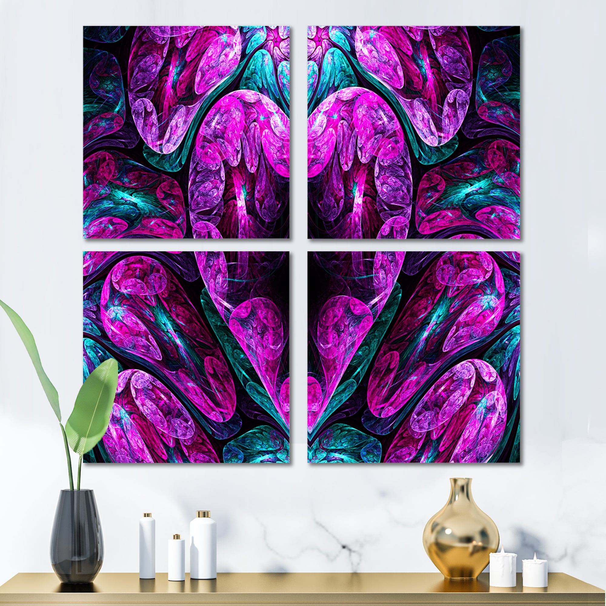 Designart "Purple Cold Mystical Heart" Floral Wall Art on Canvas - Purple