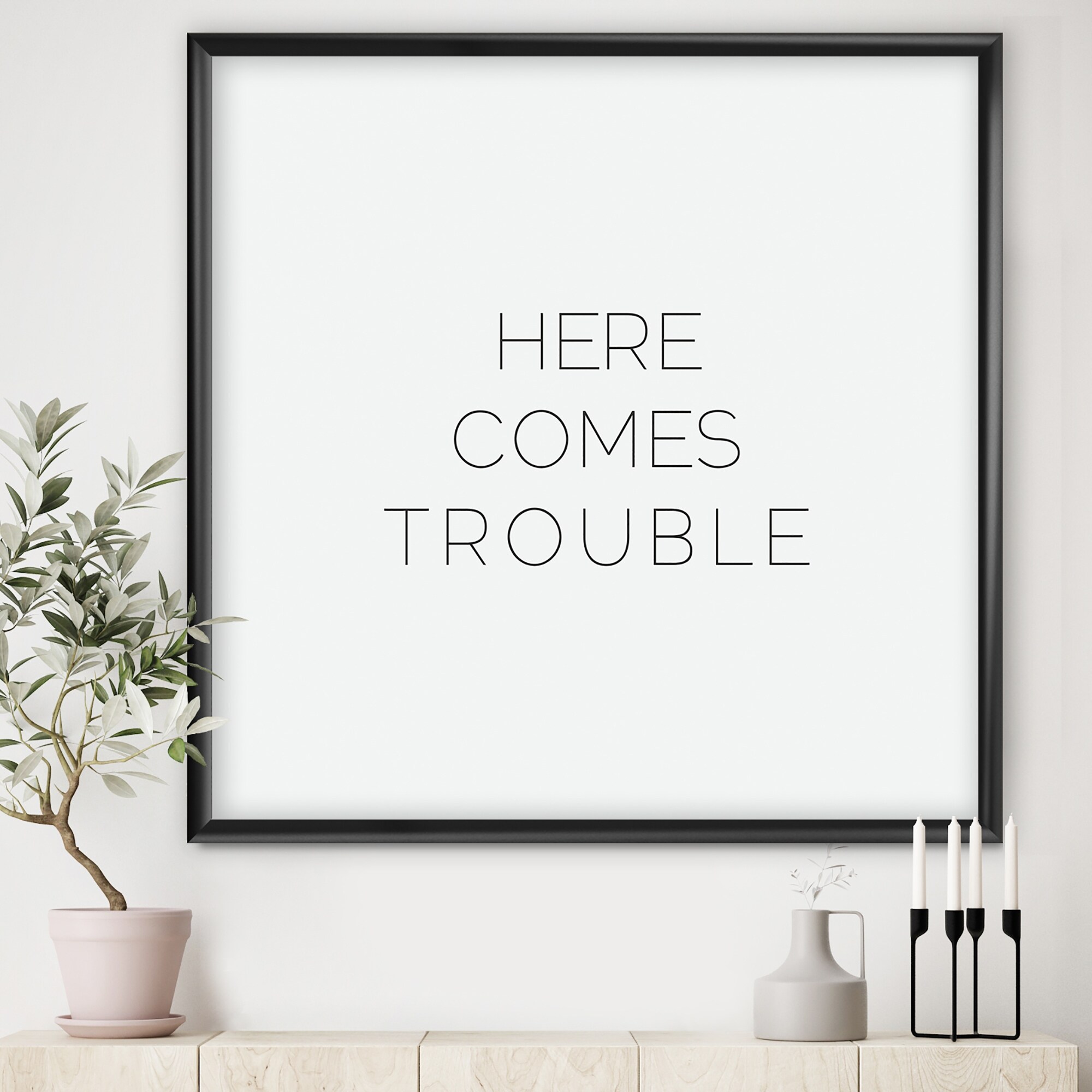 iCanvas "Here Comes Trouble Black Novelty" by Pixy Paper