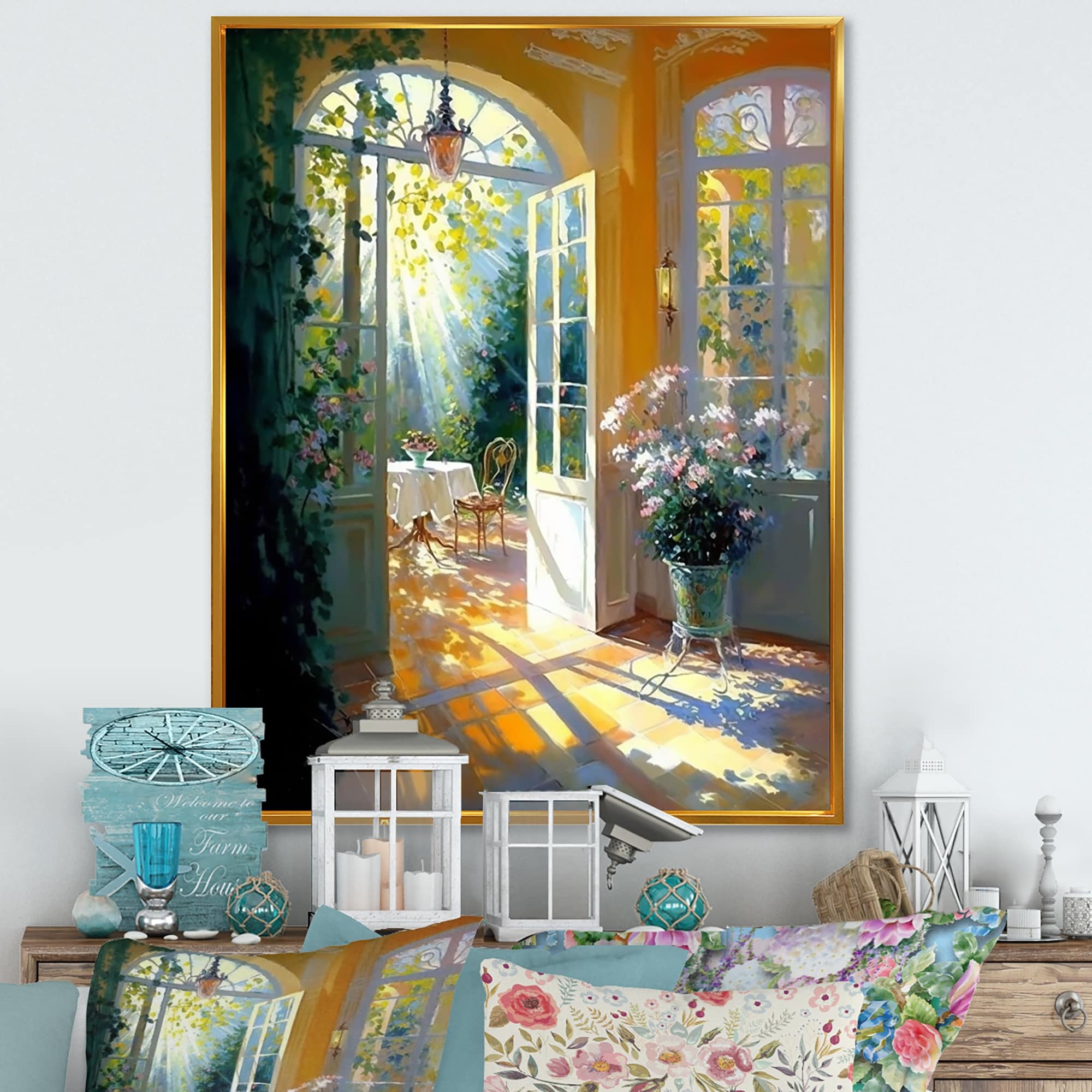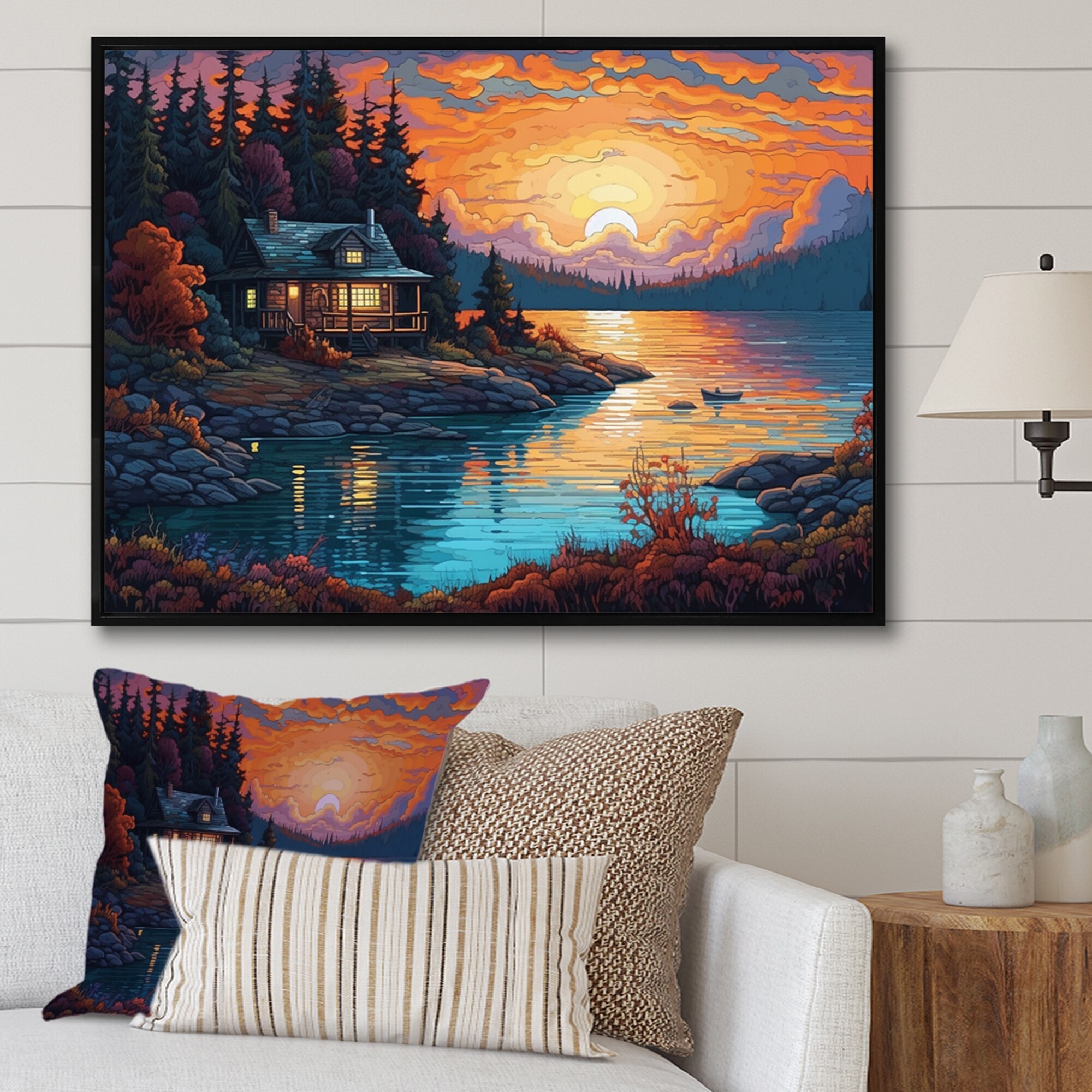 Designart "Sunlight Bliss At the Cottage IV" Lake House Cottage Framed Canvas Wall Art Print
