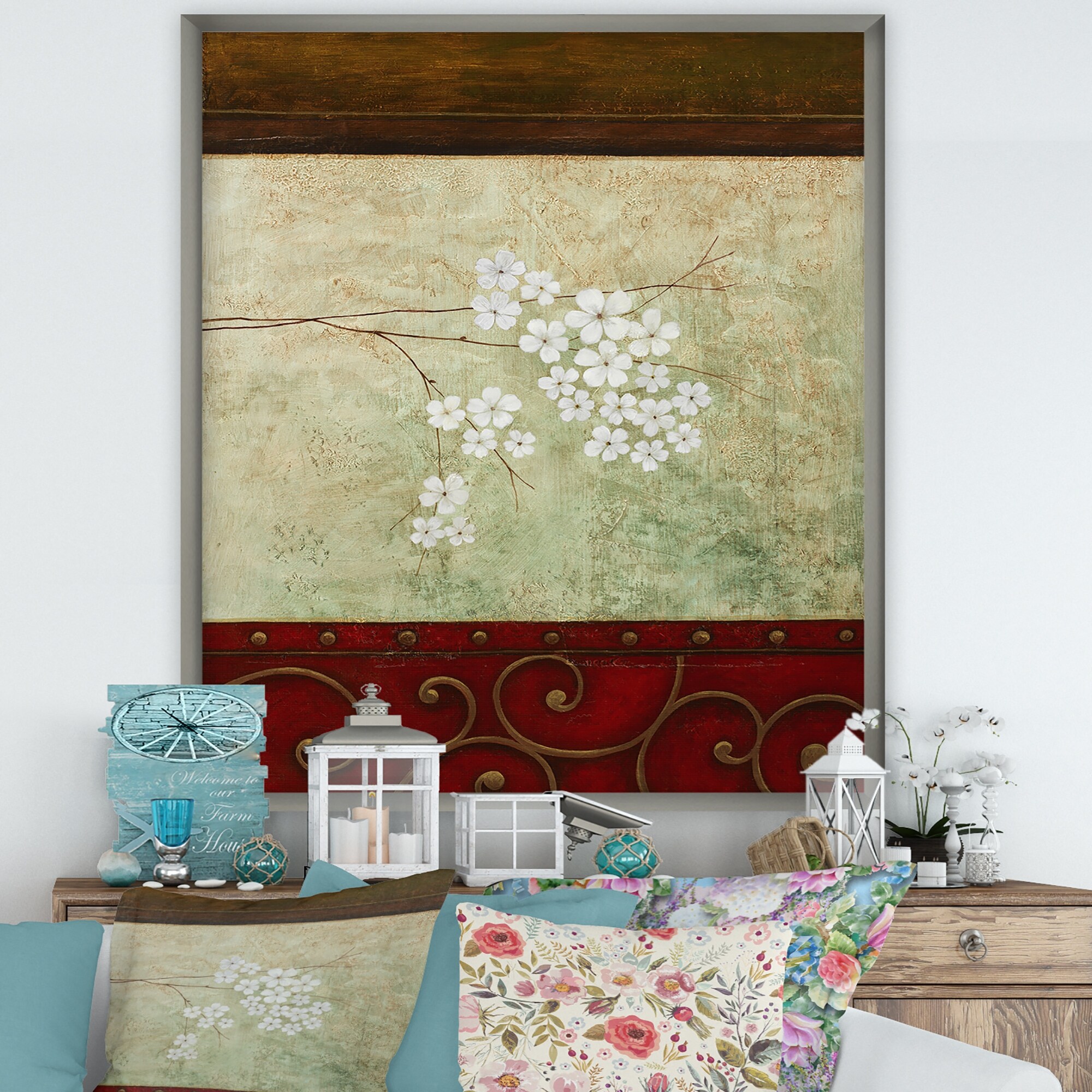 Designart "Painted White Flowers With Black Rectangle" Cottage Framed Canvas Art Print