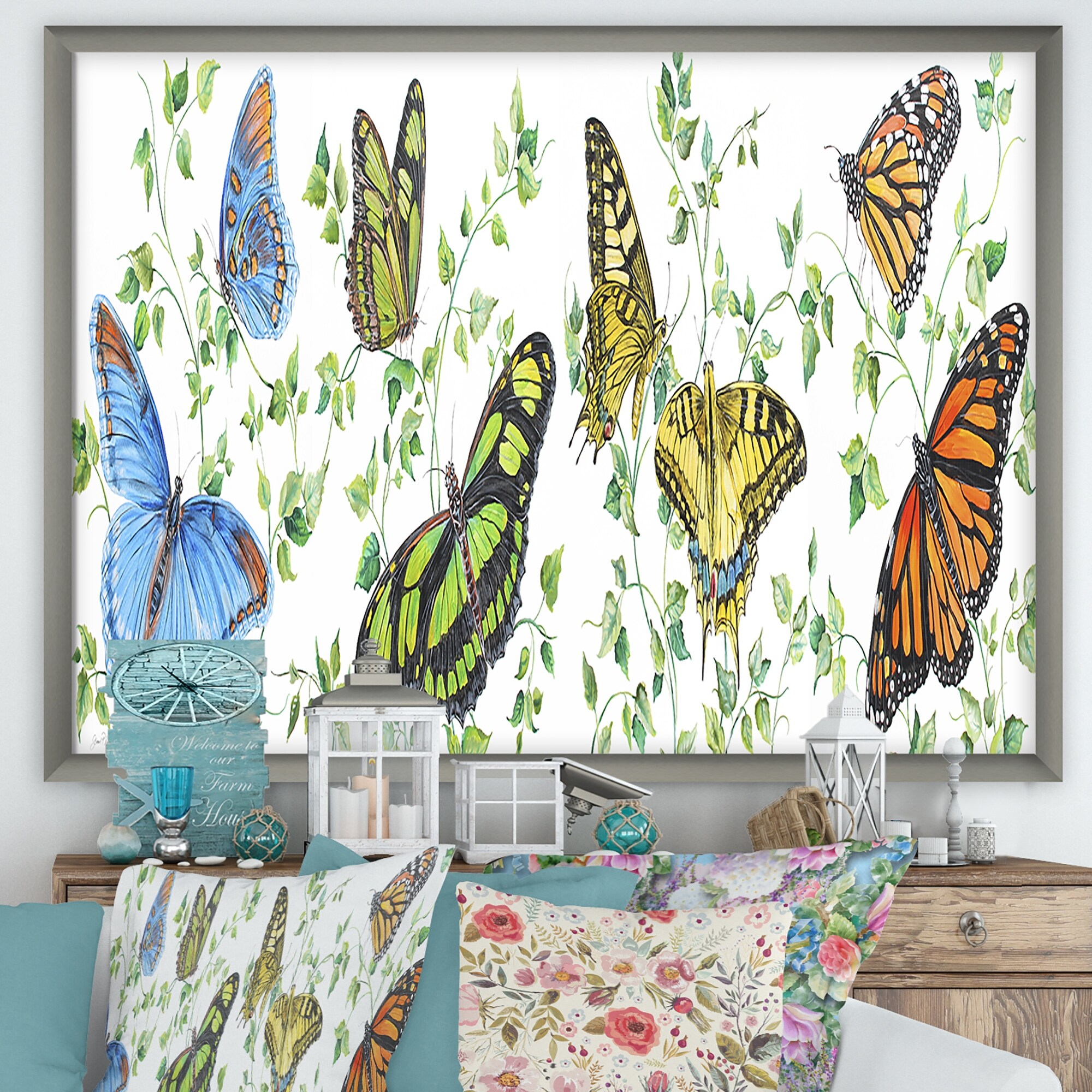 Designart "Summertime Butterflies E" Cottage Framed Art Print