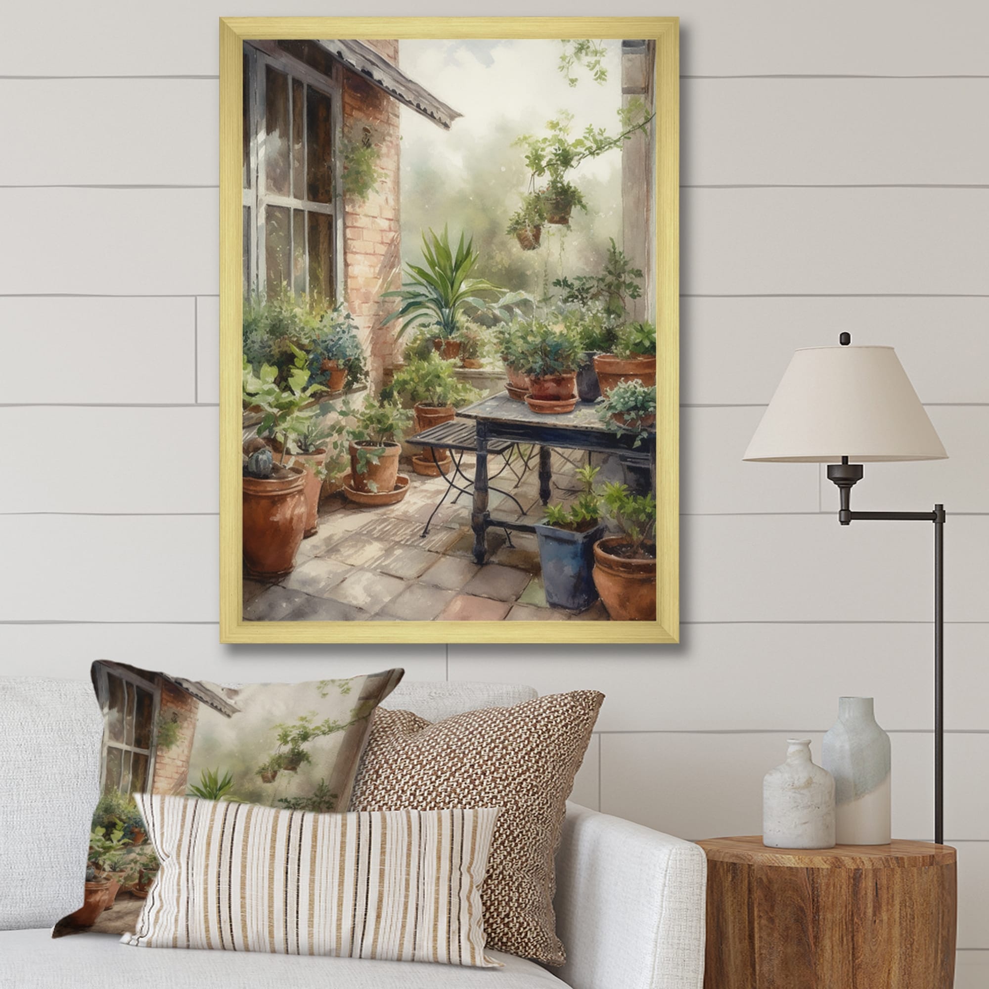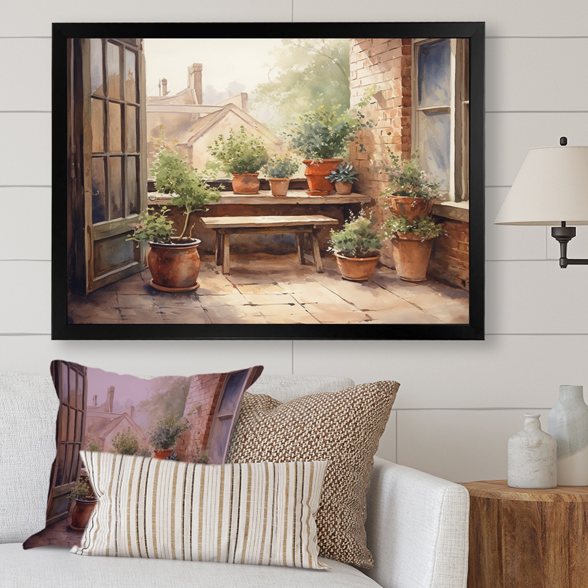 Designart "Cottage Balcony Garden Iii" Cottage Landscape Framed Canvas Art Print