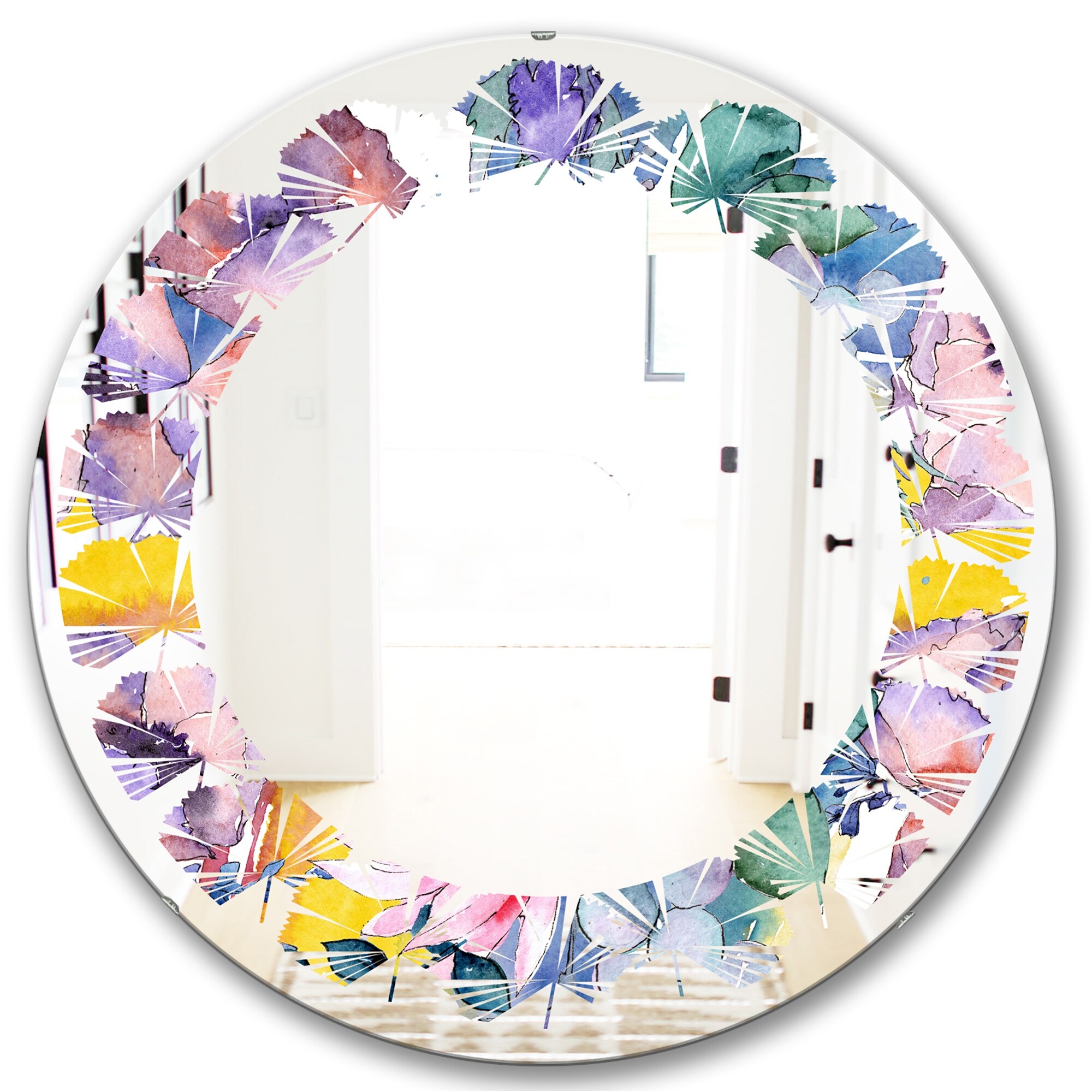 Designart 'Retro Floral Botanical V' Printed Cottage Round or Oval Wall Mirror - Leaves - Multi