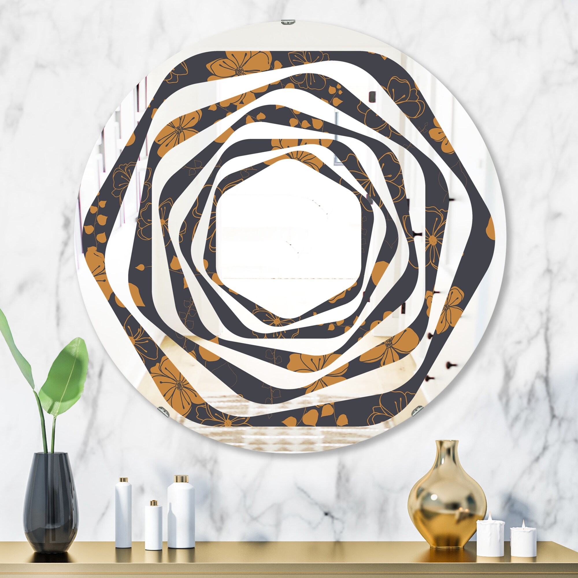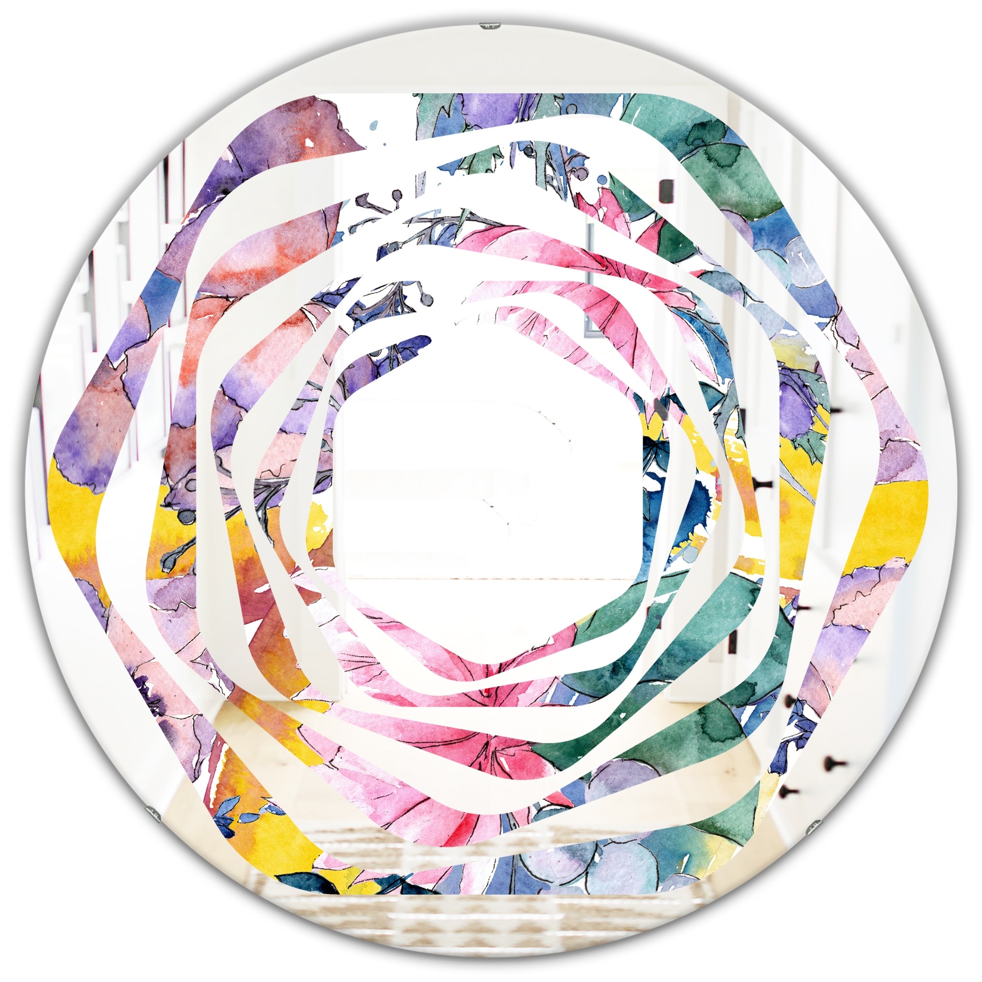 Designart 'Retro Floral Botanical V' Printed Cottage Round or Oval Wall Mirror - Whirl - Multi