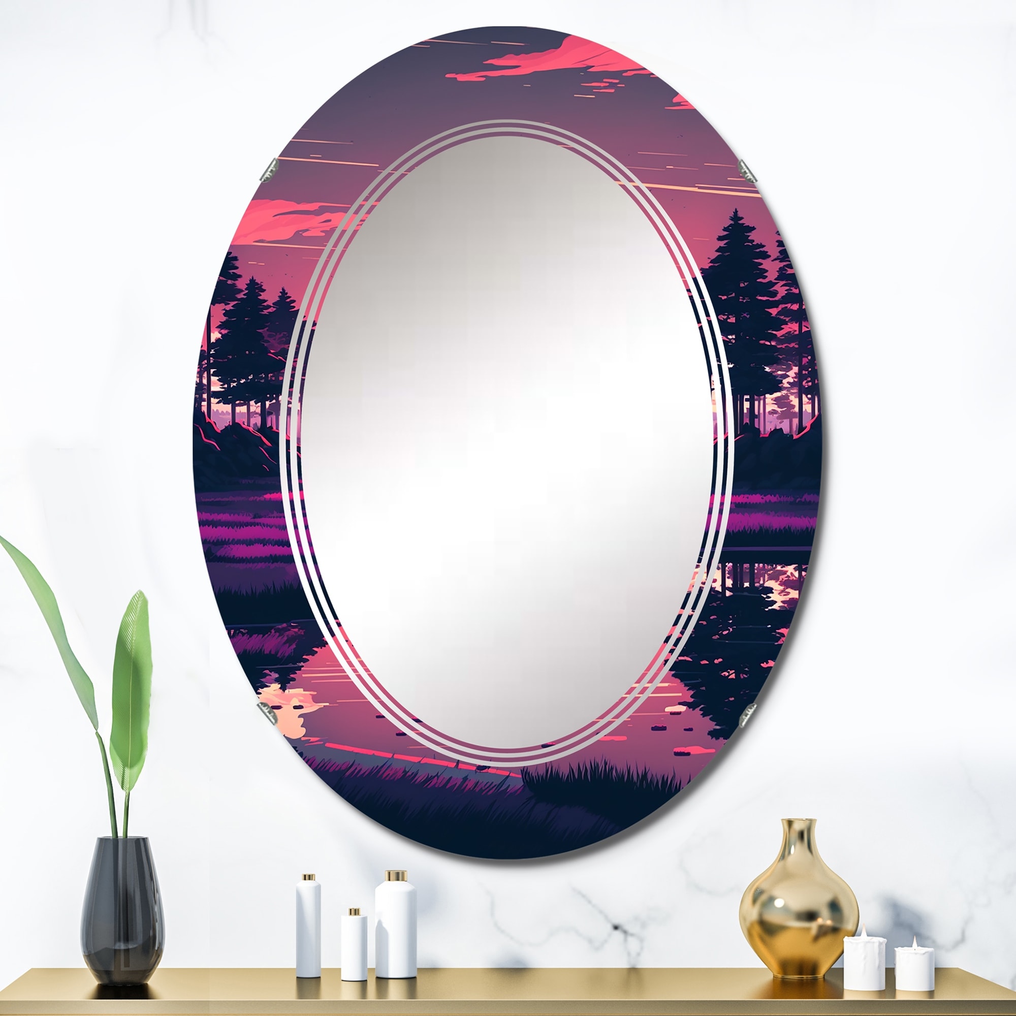 Designart 'Reflection Of Trees in the Lake At Sunset II' Printed Landscape Cottage Lake Mountains Wall Mirror