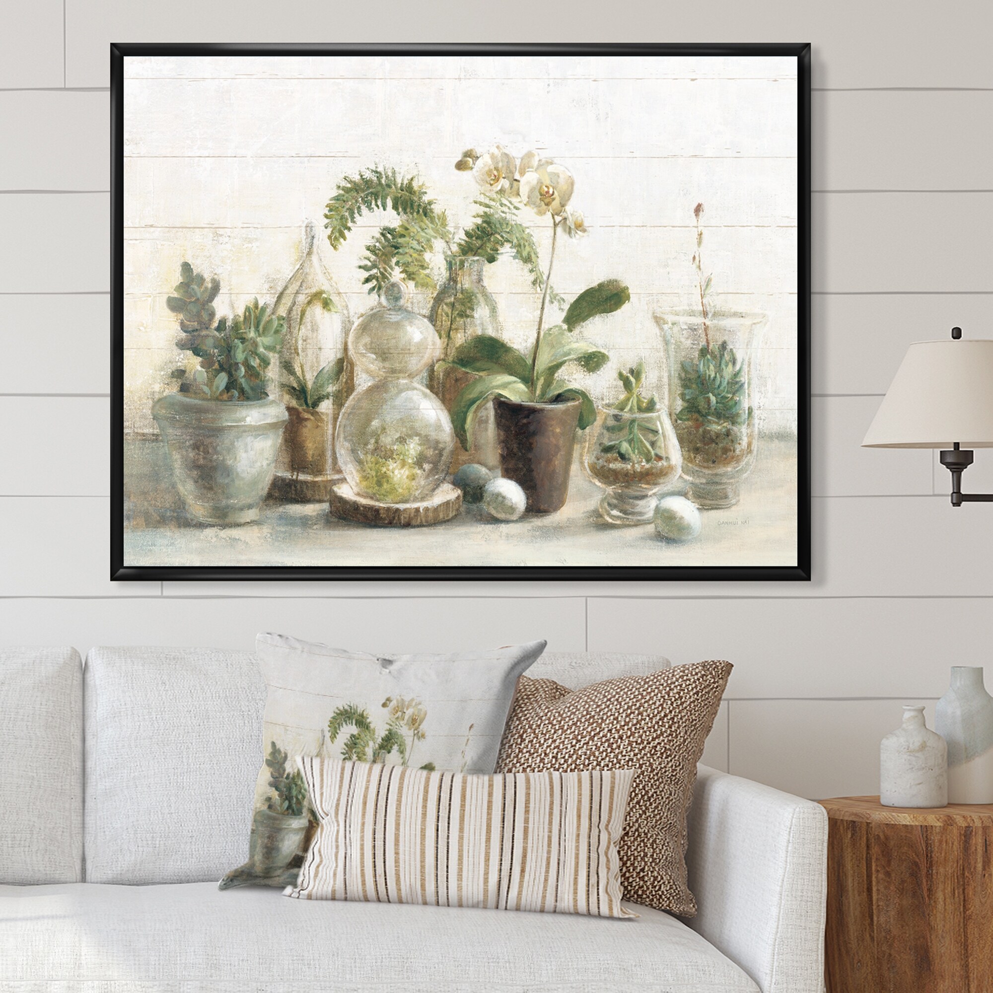 Designart "Greenhouse Orchids" Floral Cottage Framed Canvas - Grey