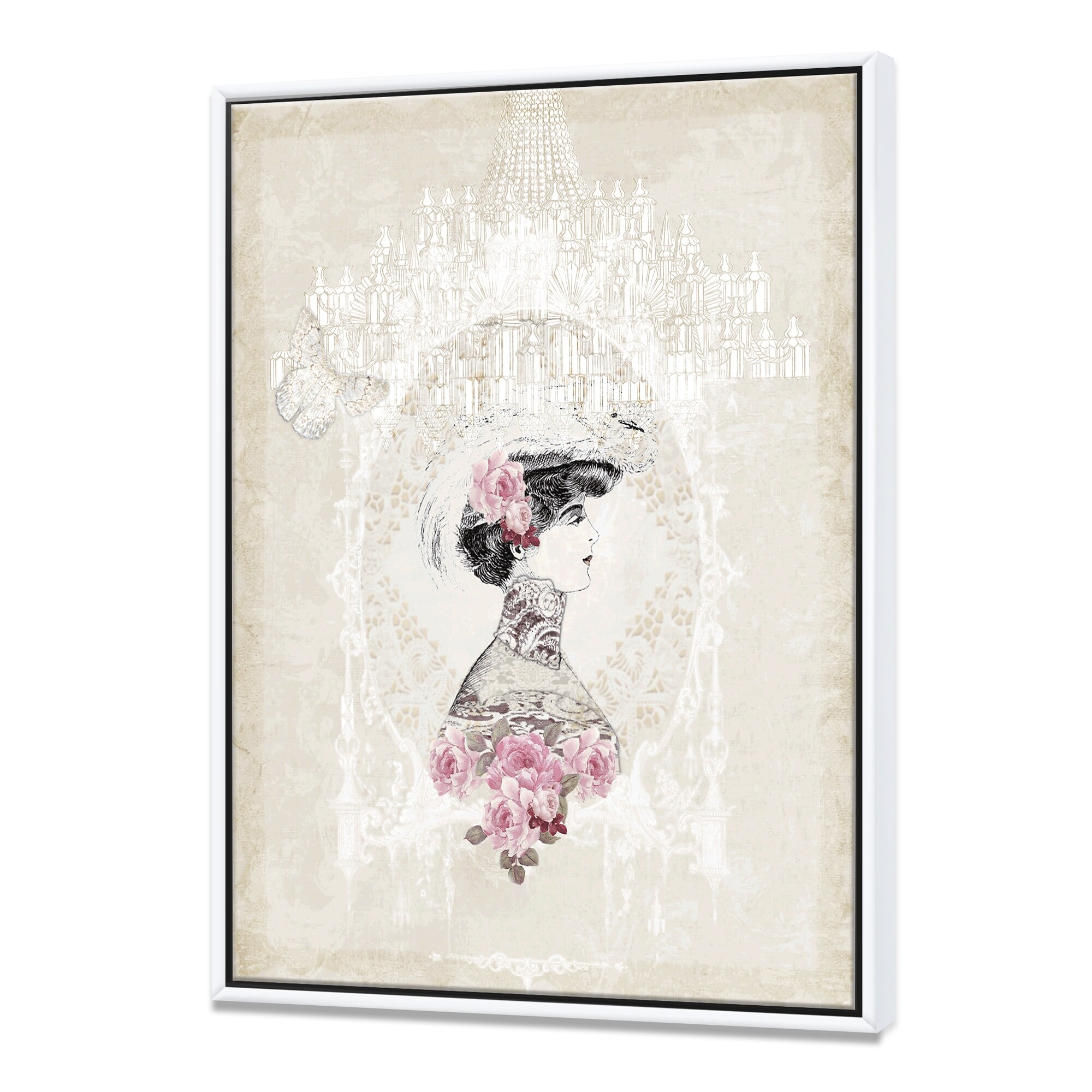 Designart "Woman on Pink Roses With White Chandelier" Cottage Premium Framed Canvas Wall Art