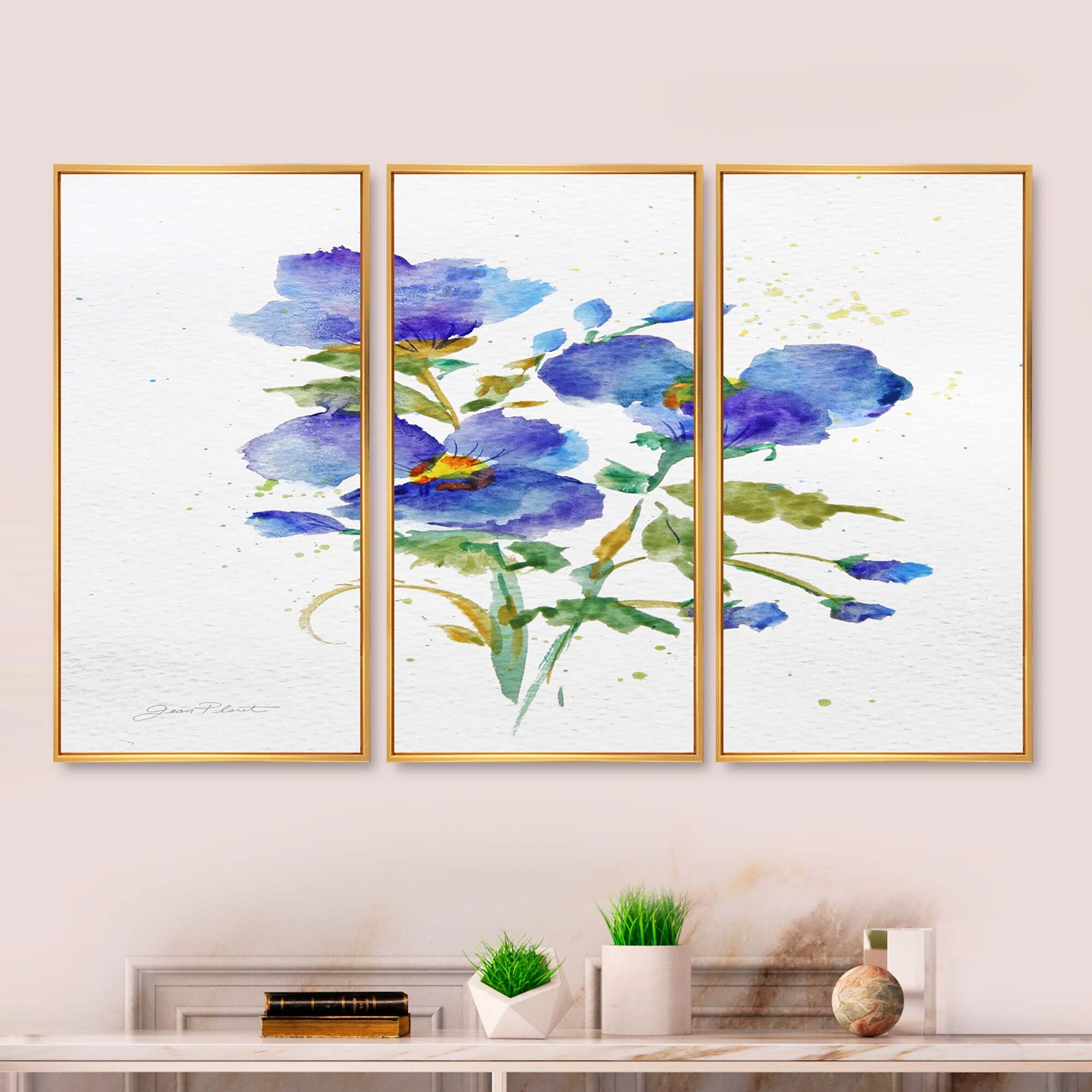 Designart "Watercolor Flowers I" Cottage-Floral Framed Wall Decor Set of 3 - 4 Colors of Frames