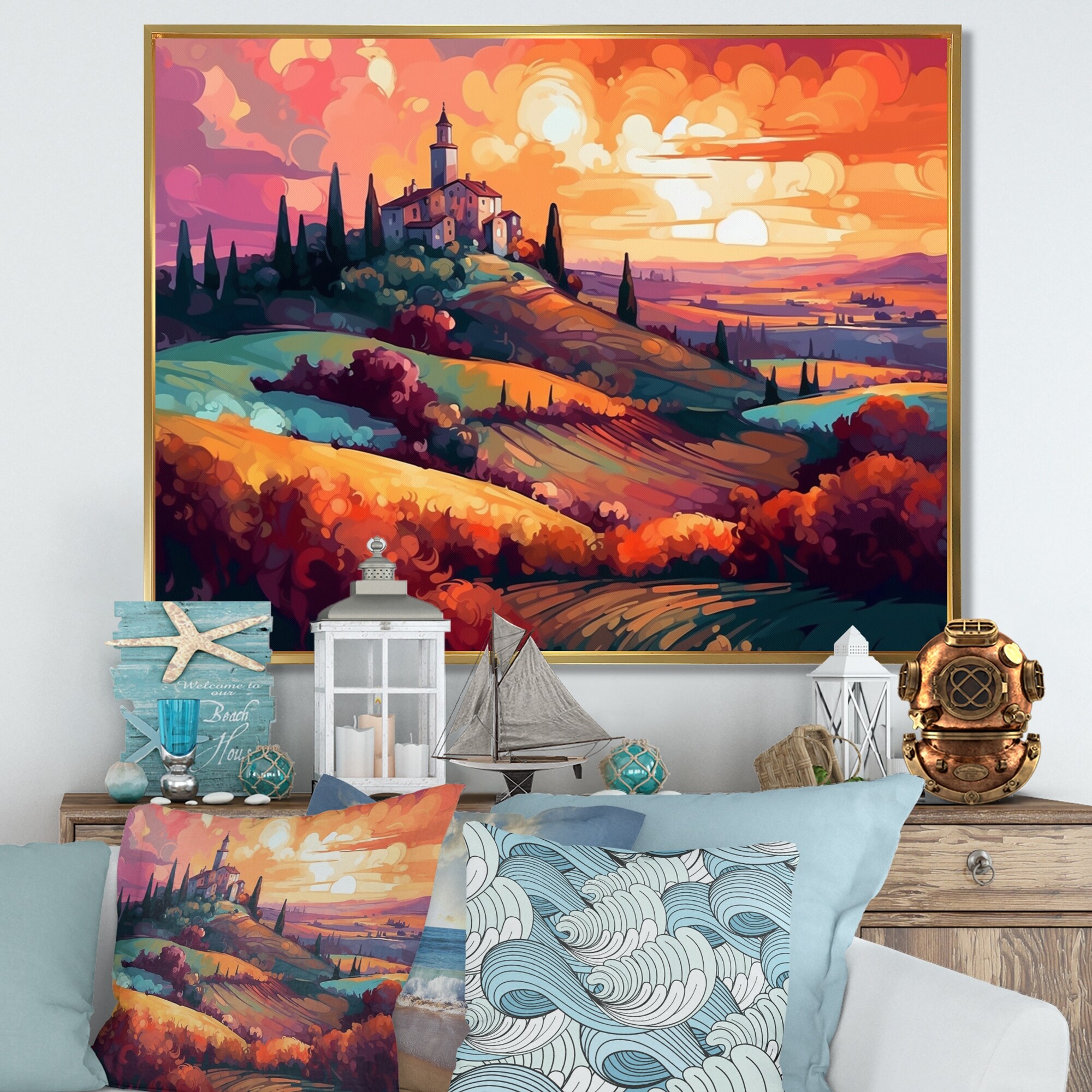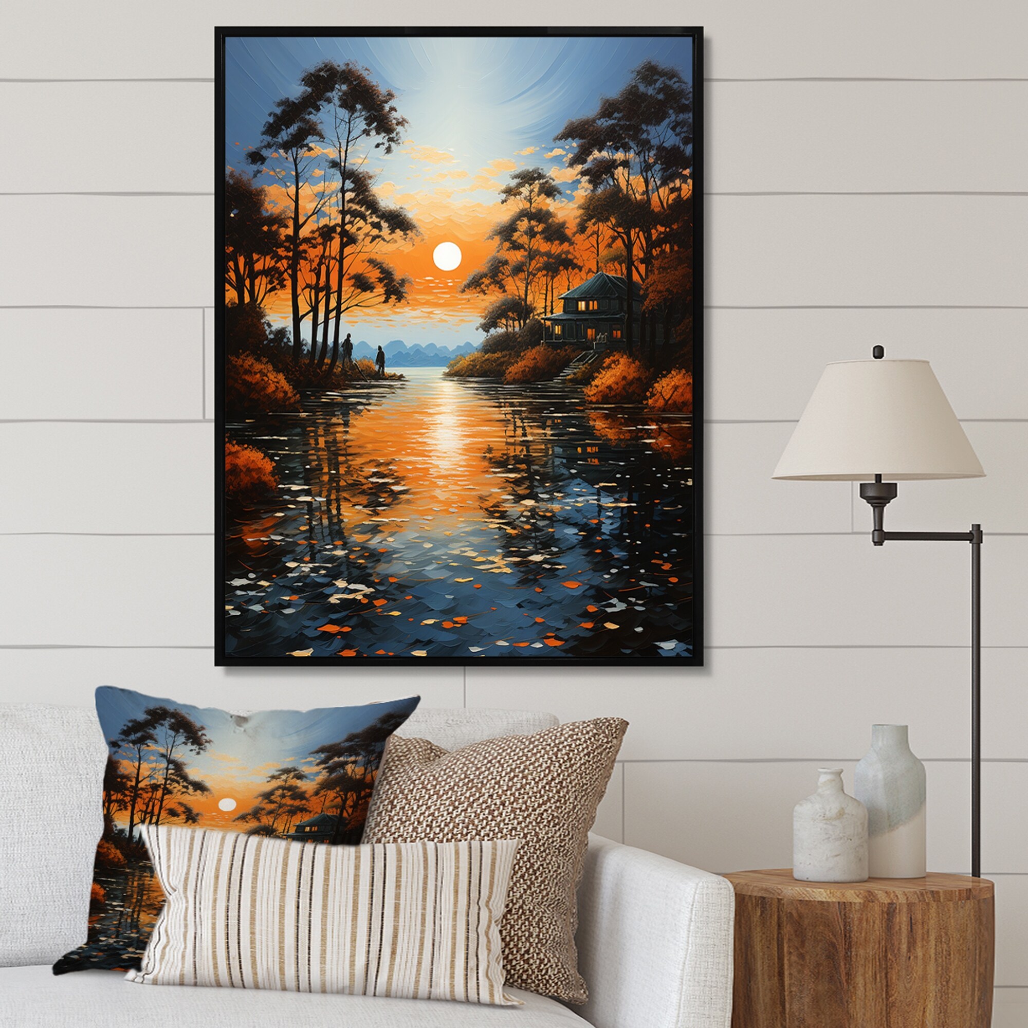 Designart "Autumn Sunset Cottage Iii" Cottage Landscape Framed Wall Decor