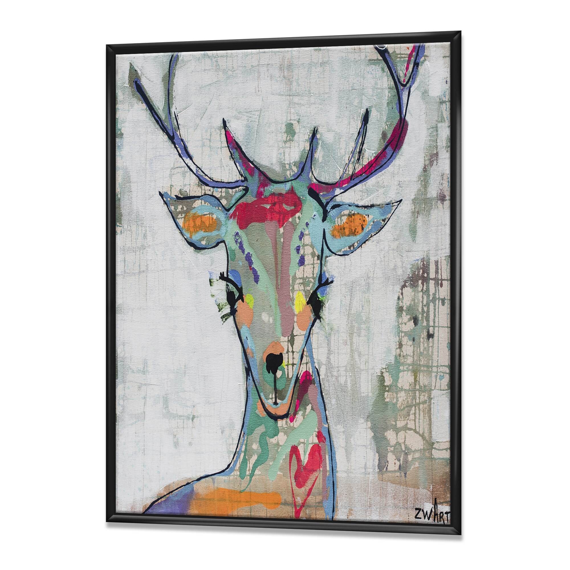 Designart "Colorful Deer I" Cottage Framed Canvas Artwork Print