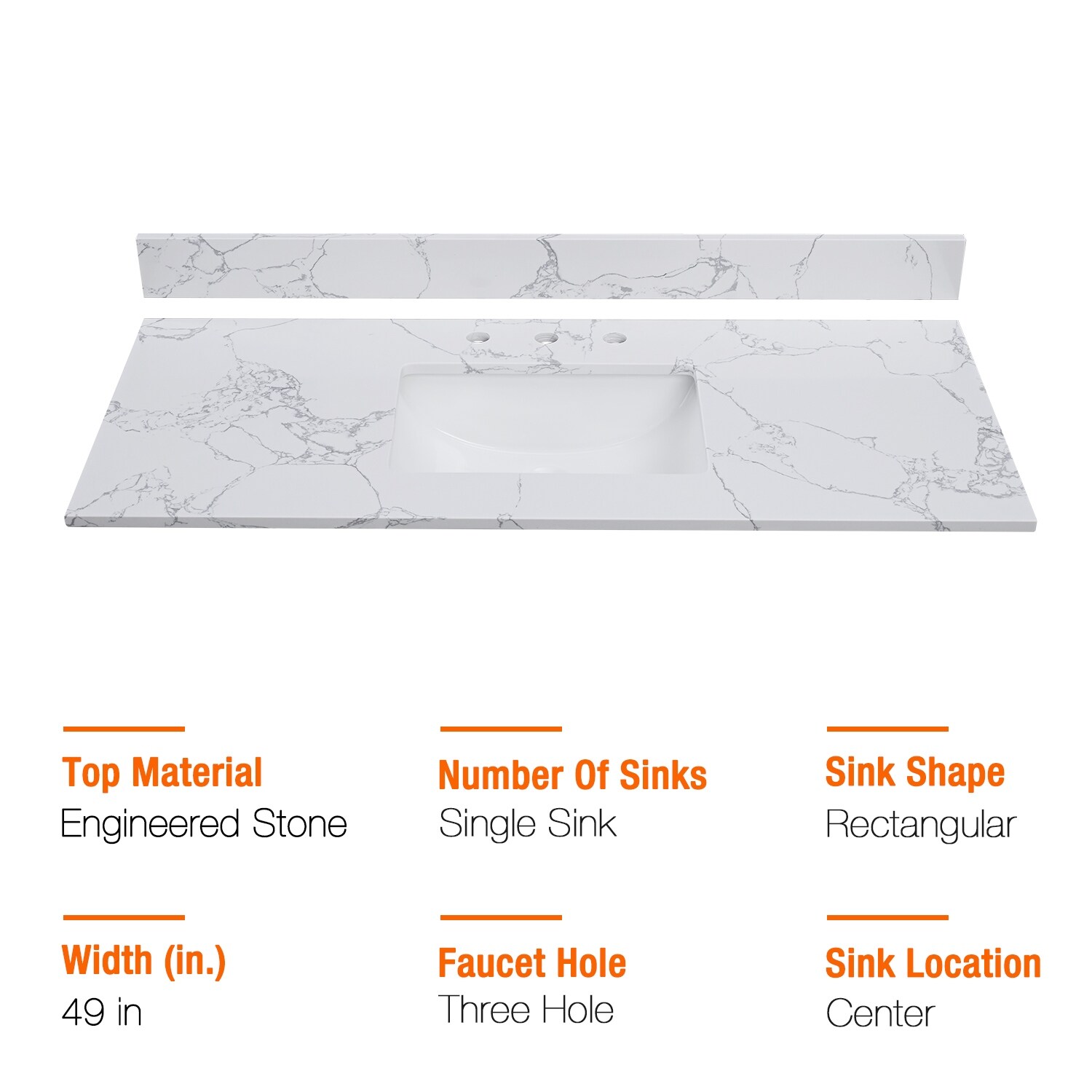PROOX Bath Vanity Cultured Marble Counter Top Rectangle Porcelian Sink
