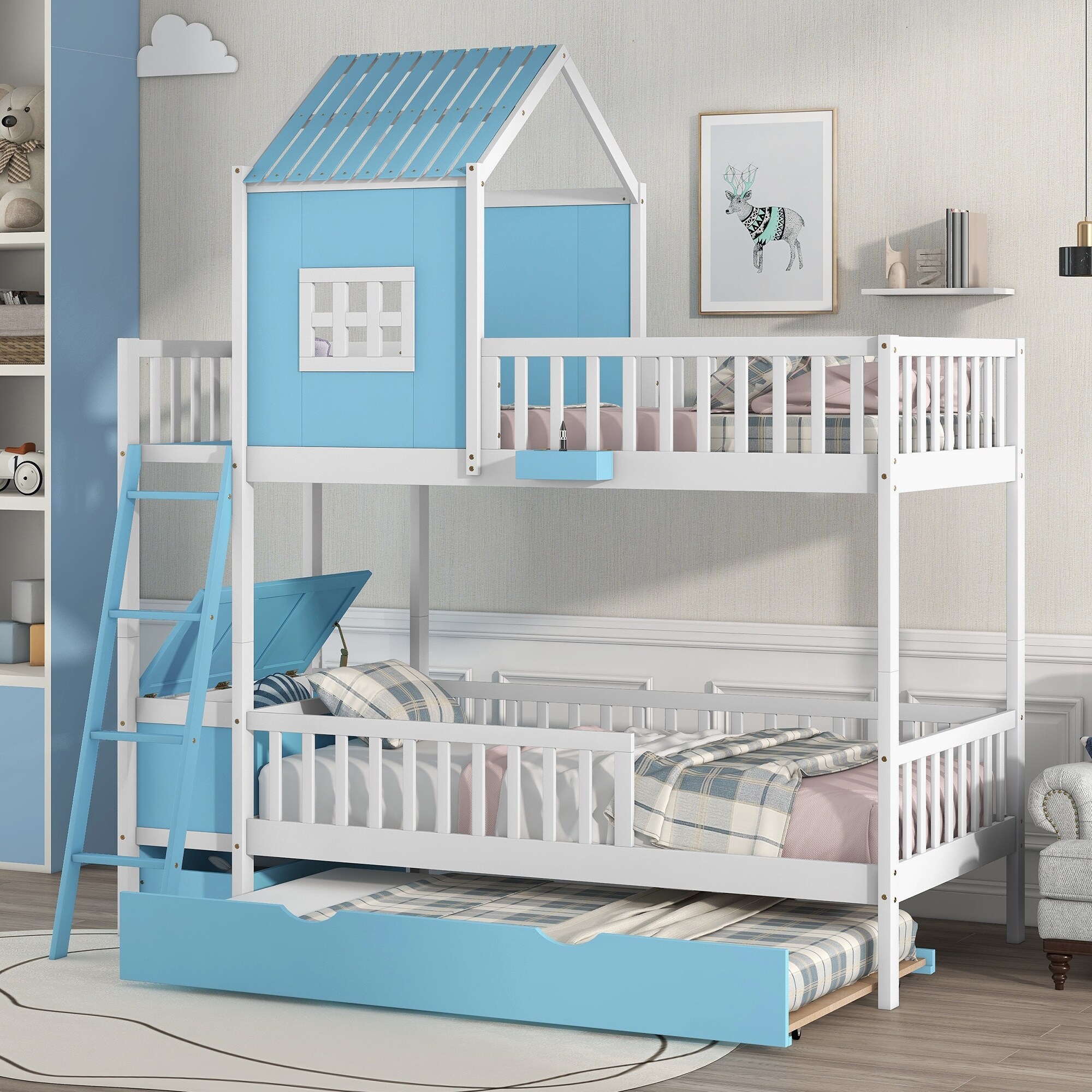 Twin House Bunk Bed with Trundle, Staircase & Storage