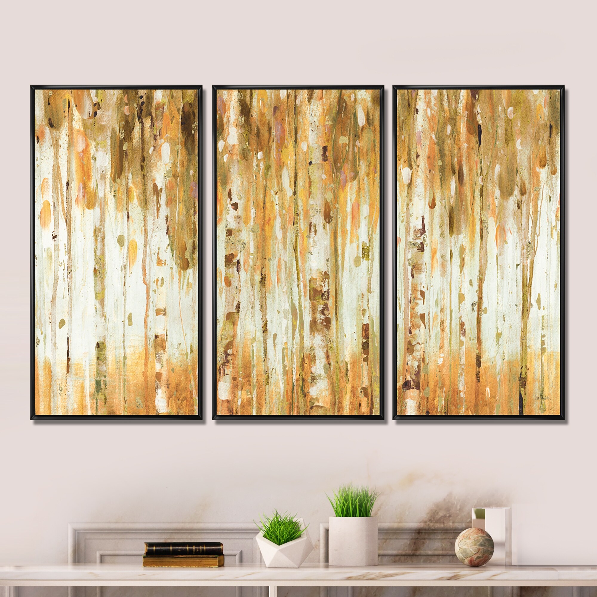 Designart "The Forest I Fall Crop" Modern & Contemporary Framed Art Set of 3 - 4 Colors of Frames