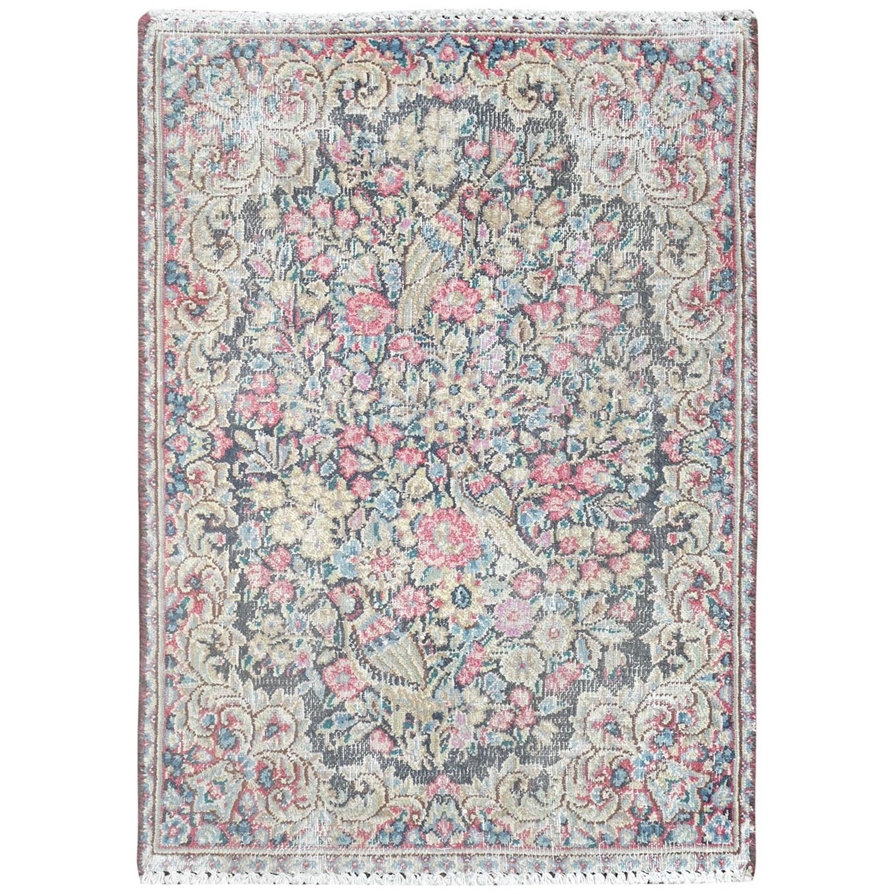 Shahbanu Rugs Colorful, Distressed Look Worn Wool Hand Knotted, Old Persian Kerman Cropped Thin, Mat Oriental Rug (1'8" x 2'4")