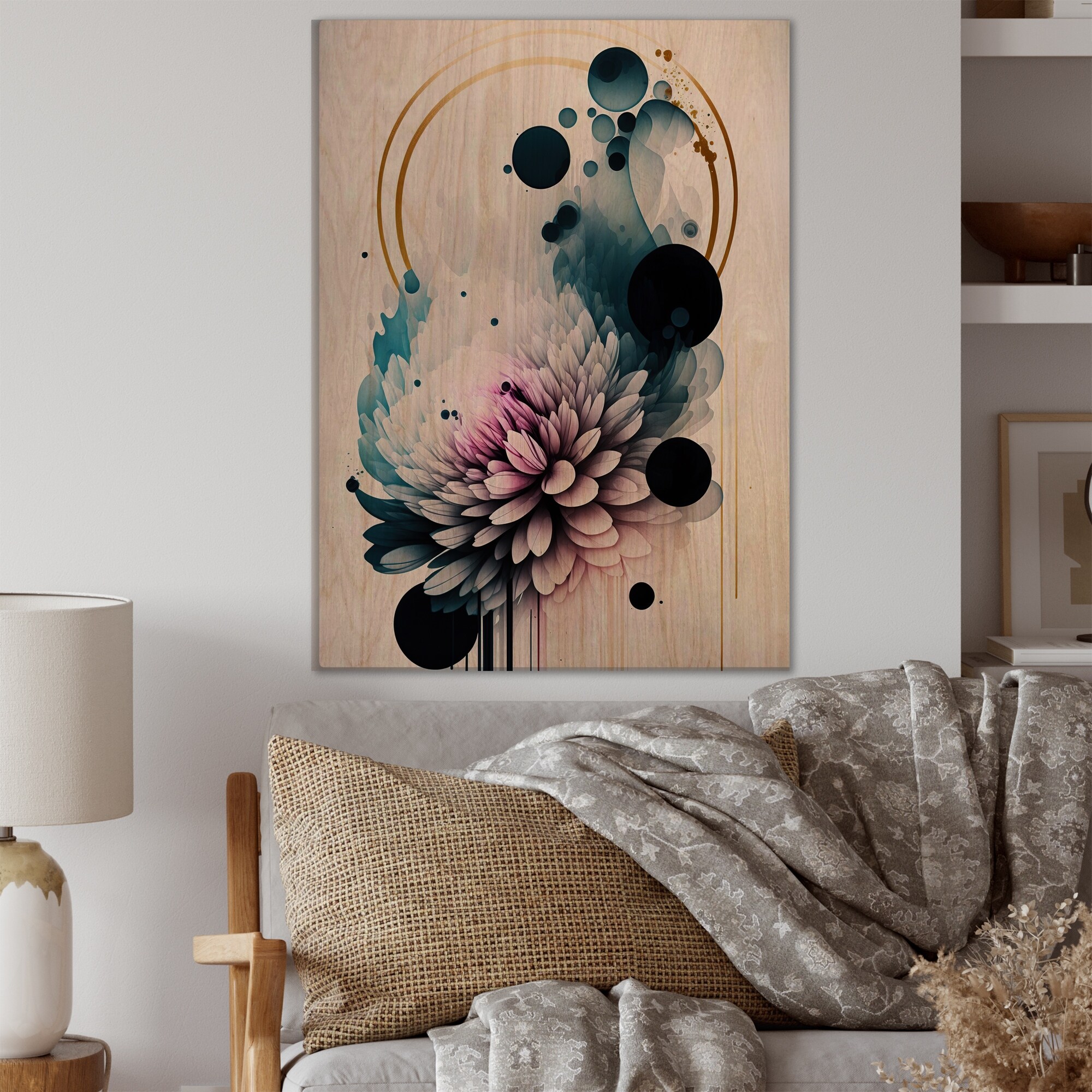 Designart 'Hyperrealistic Dahlia Flowers I' Floral Dahlia Wood Wall Art - Natural Pine Wood
