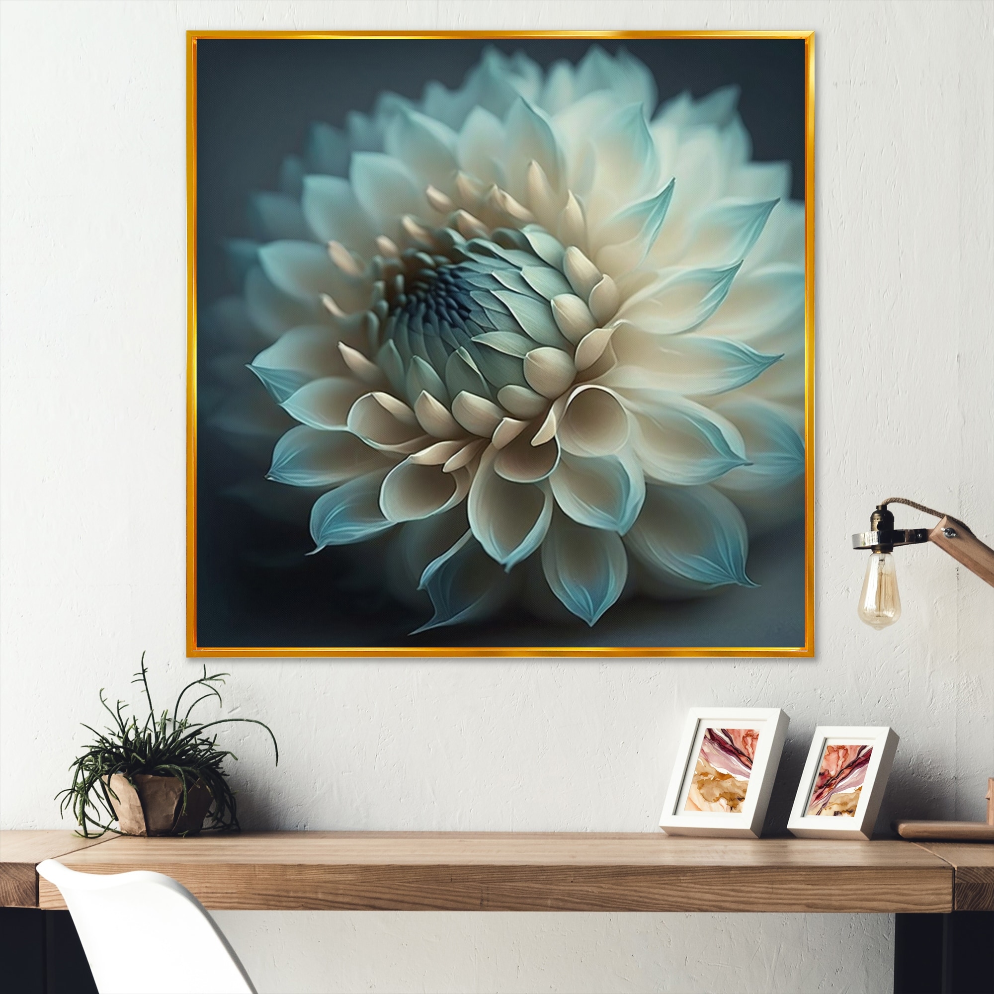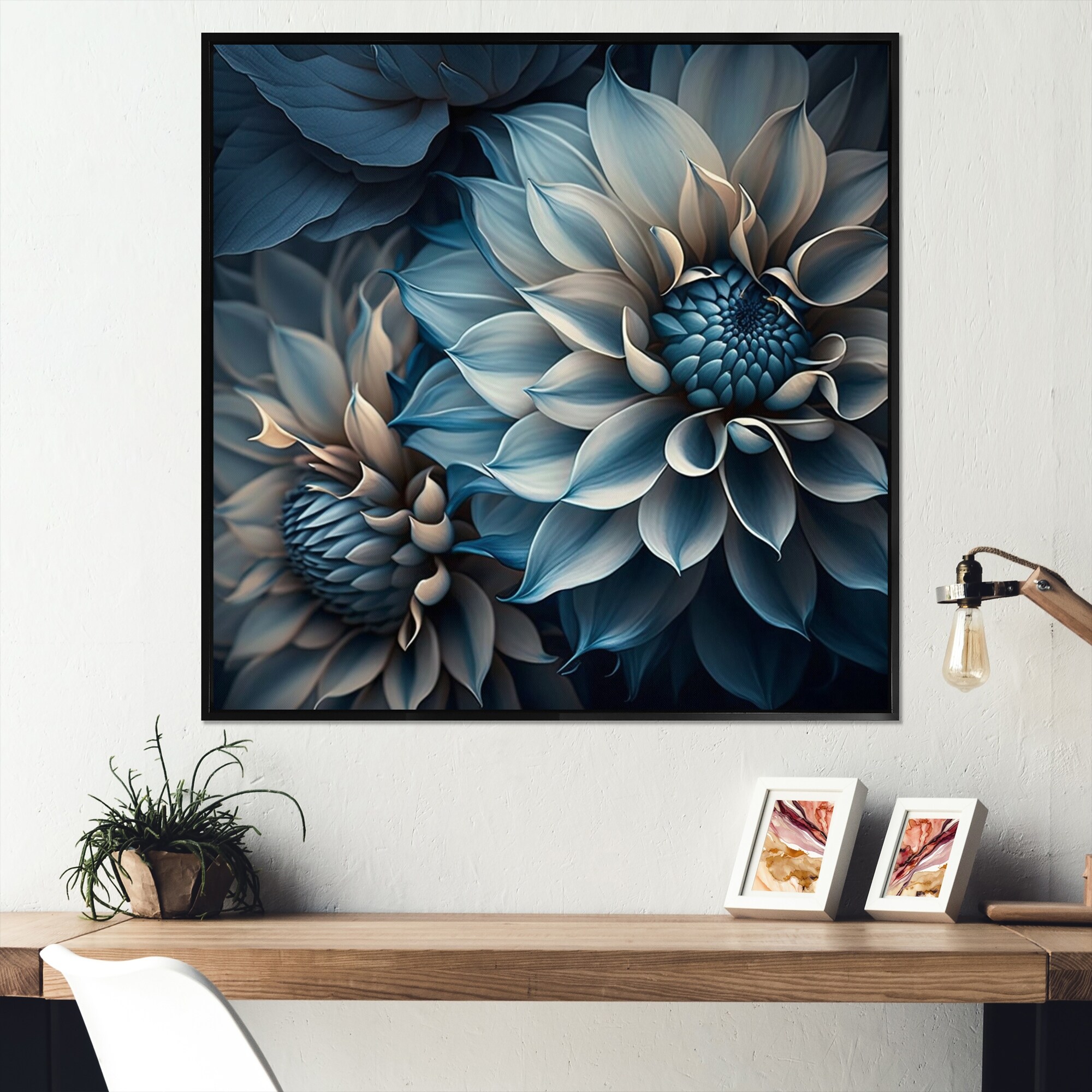 Designart "Blue And White Dahlia Flowers V" Floral Dahlia Framed Canvas Art Print