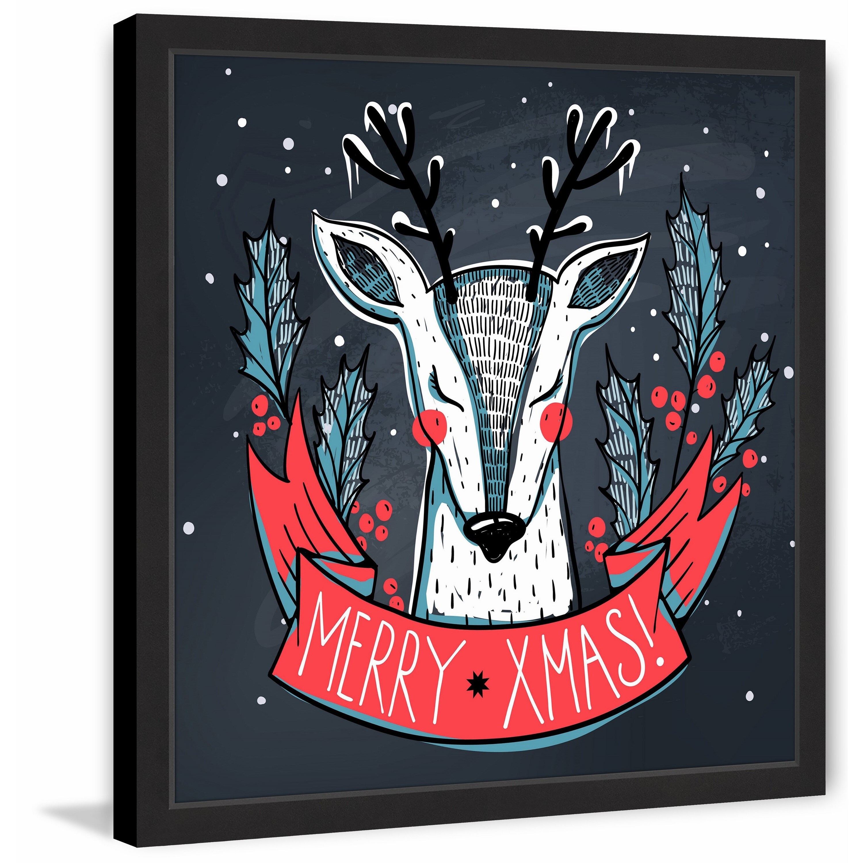 Designart "Portrait Of a Christmas Deer With Red Glasses" Farmhouse Framed Art Print