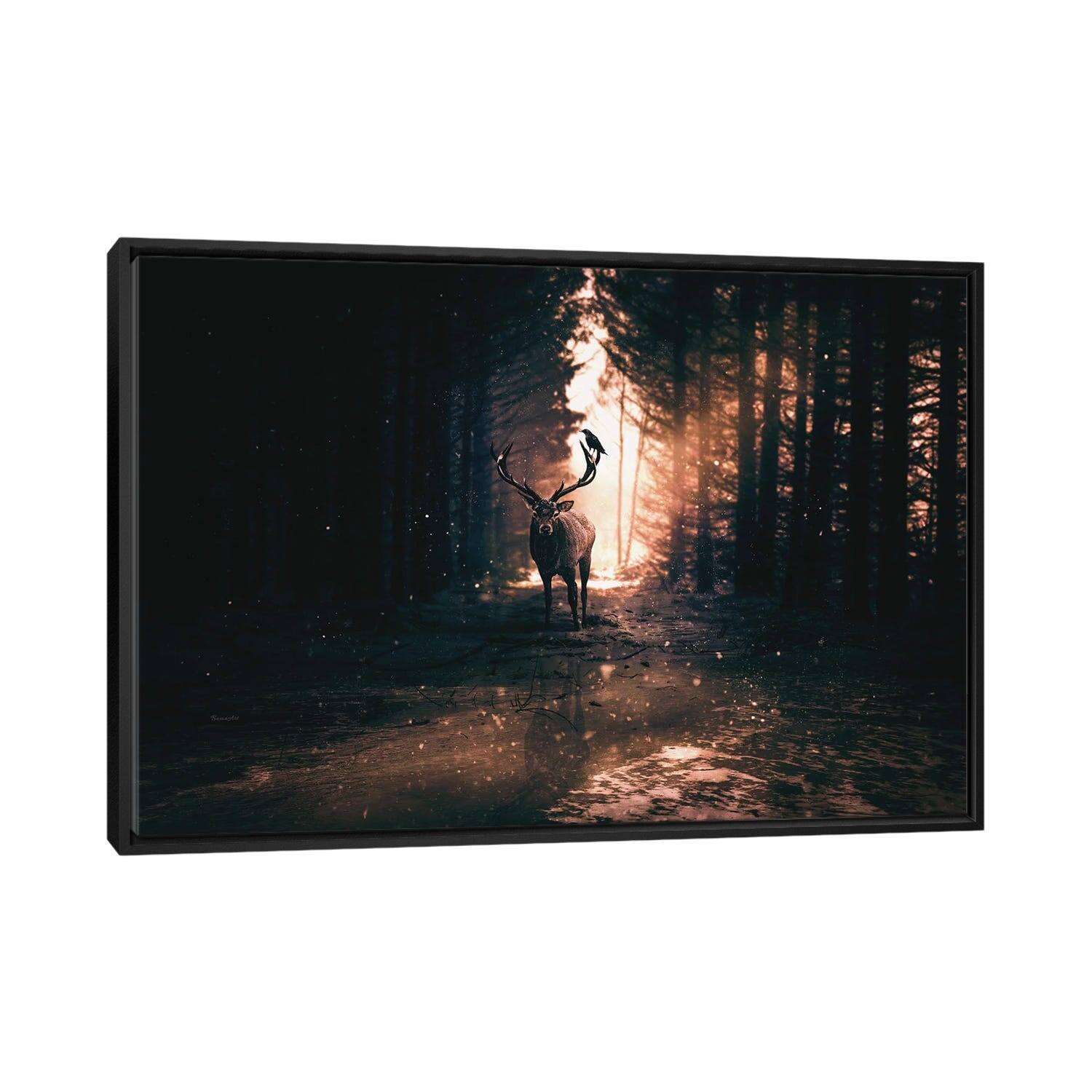 Designart "Animal Deer Symphony of Forest II" Animals Deer Framed Canvas Prints