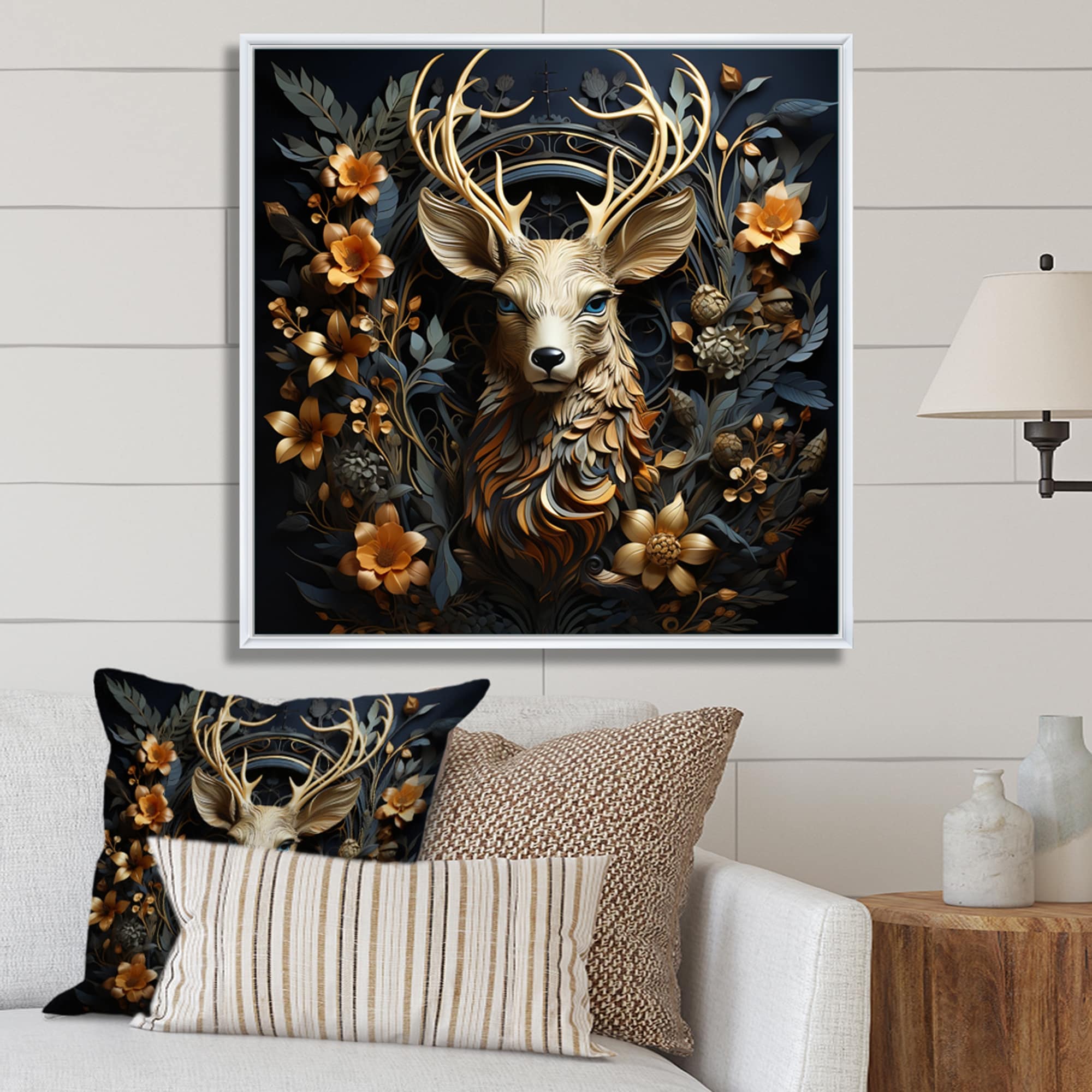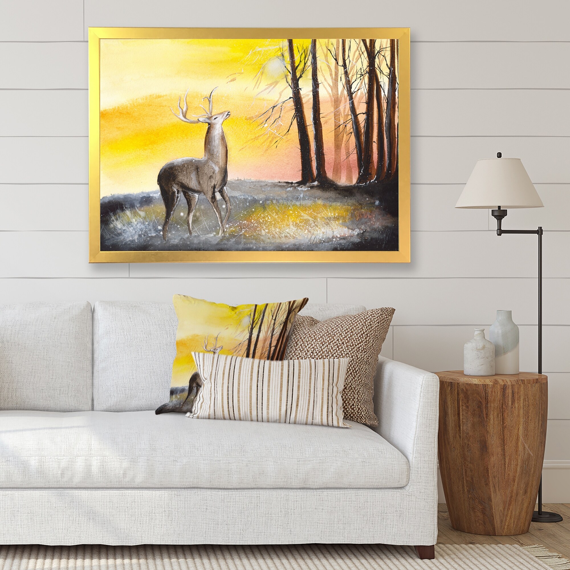 Designart "Golden Deer I" Modern Farmhouse Framed Art Print
