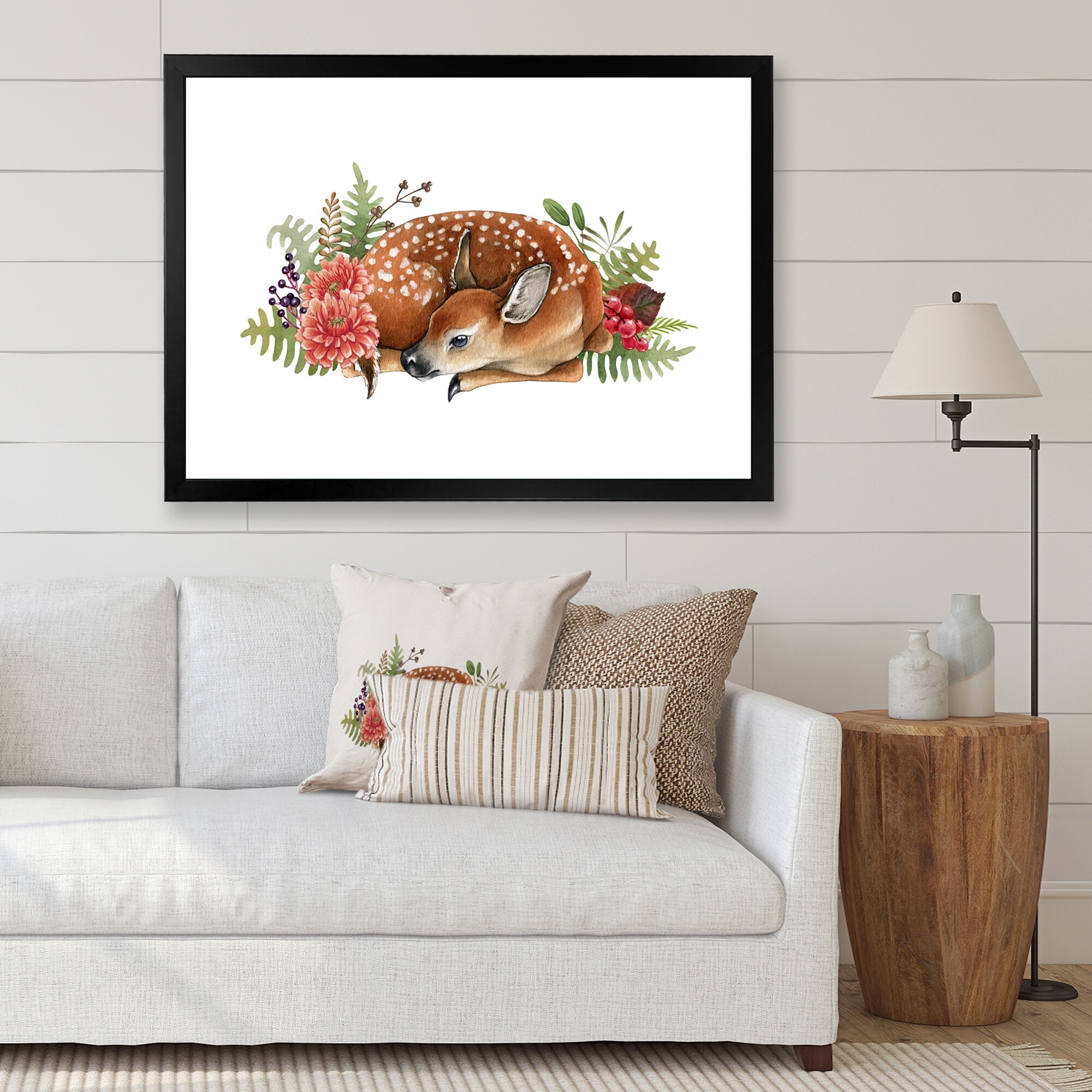 Designart "Cute Deer Floral Art IV" Animals Framed Art Print