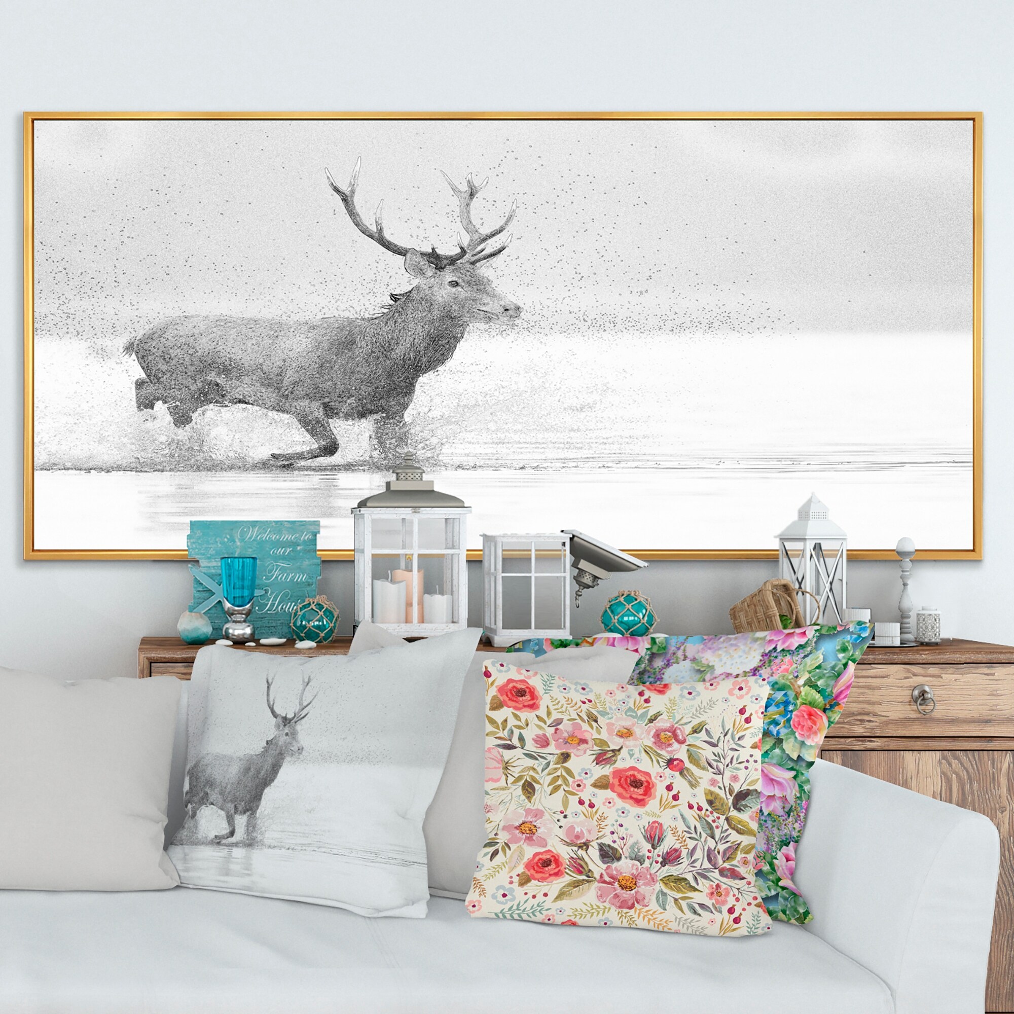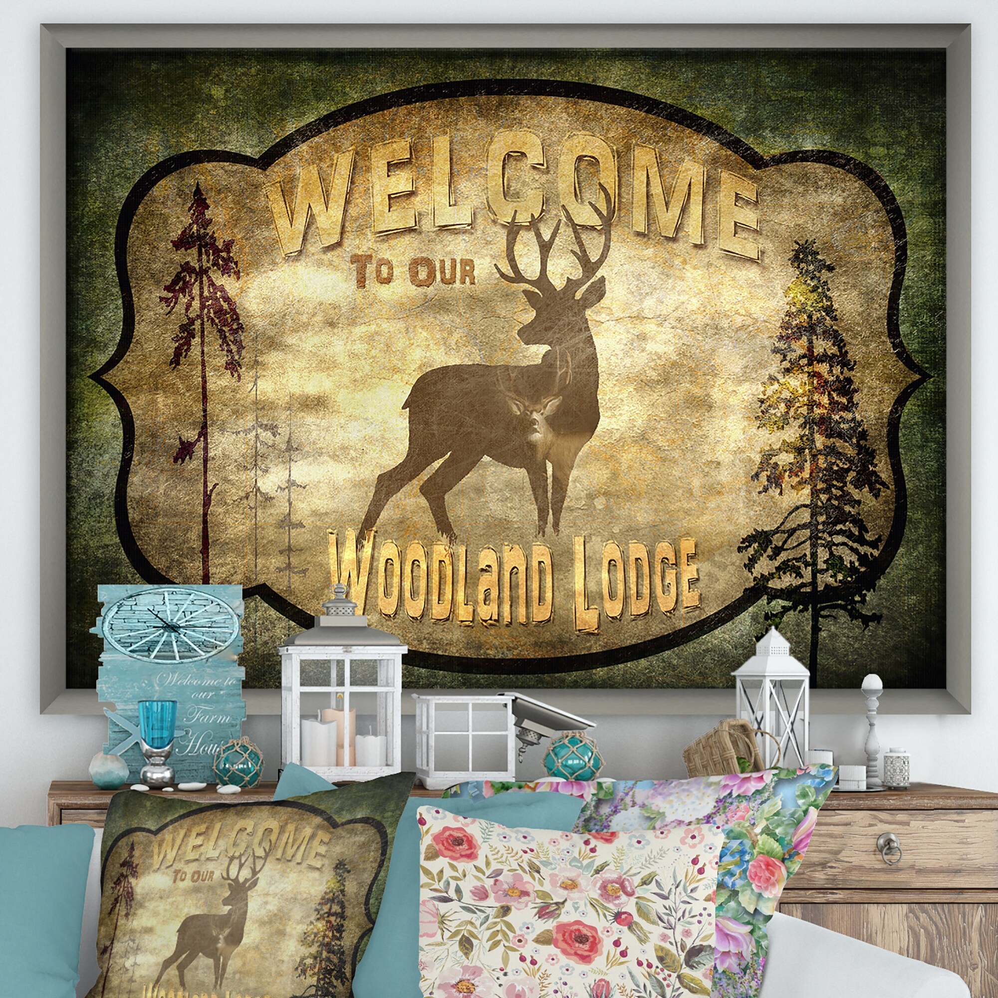 Designart "Welcome_Lodge Deer" Cottage Framed Art Print