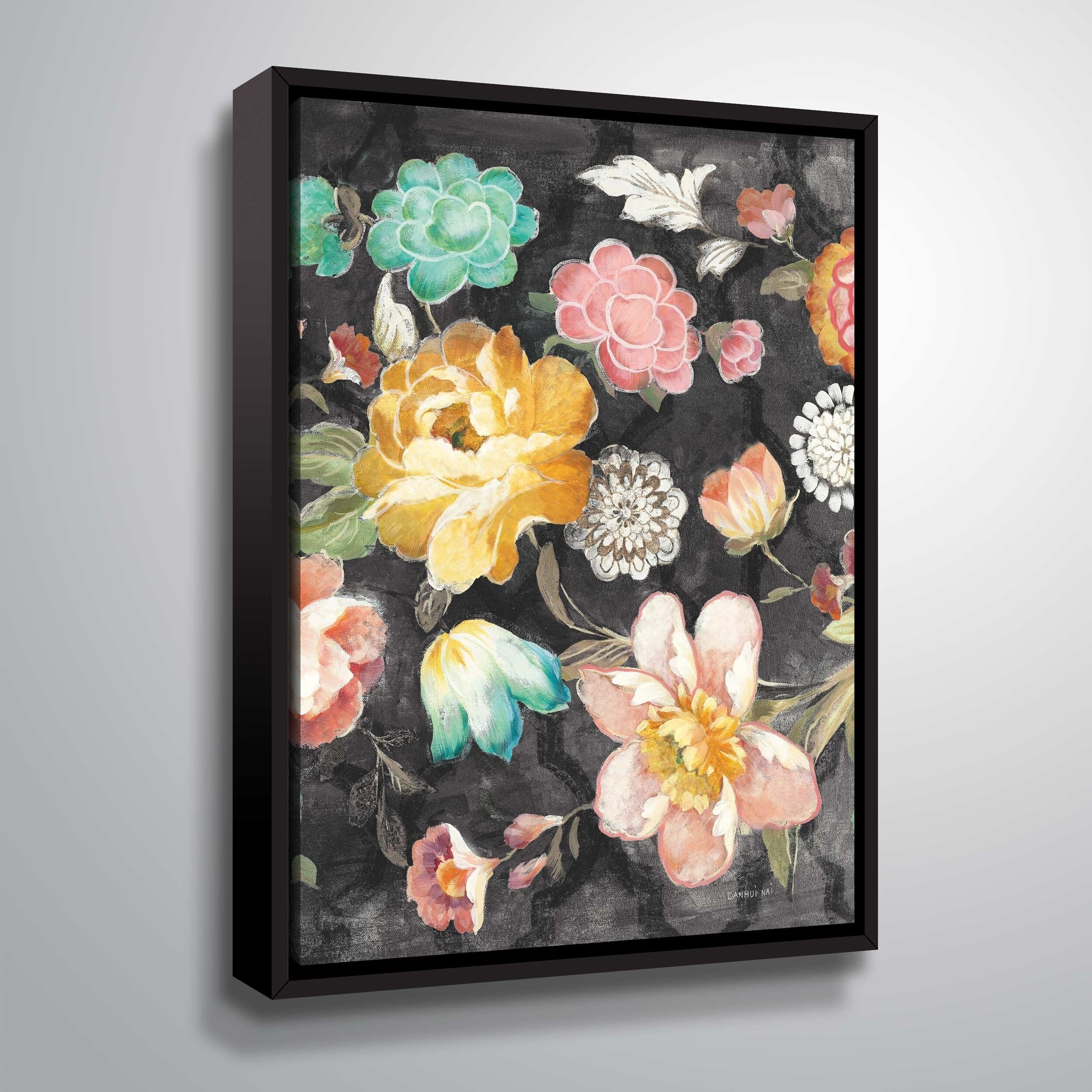 ArtWall Danhui Nai 'Garden of Delight Black III' Gallery Wrapped Floater-framed Canvas