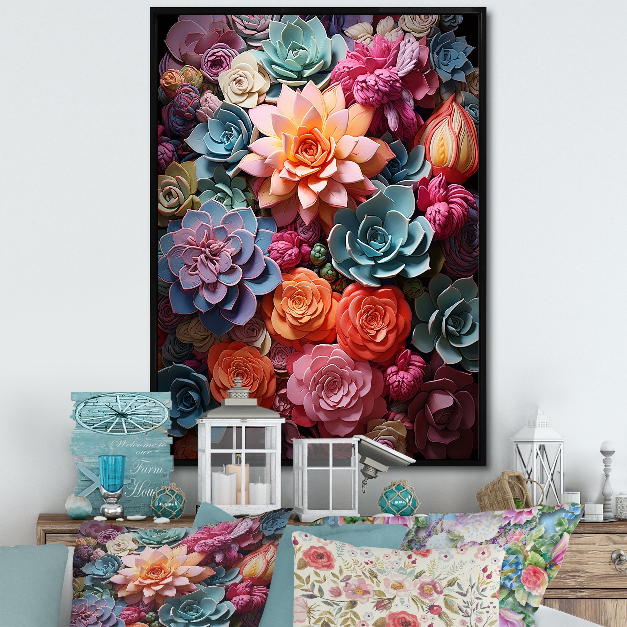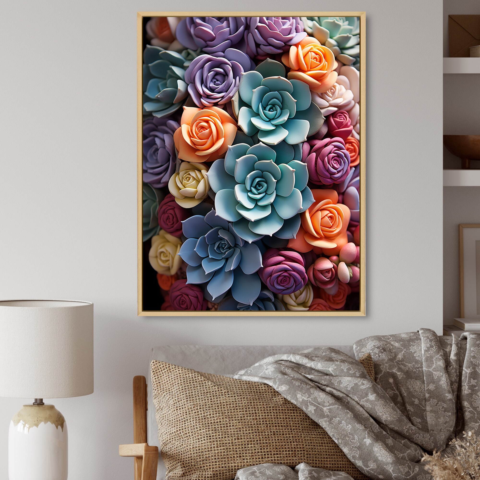 Designart "Colorful Succulents Succulent Delight" Succulent Framed Canvas Wall Art