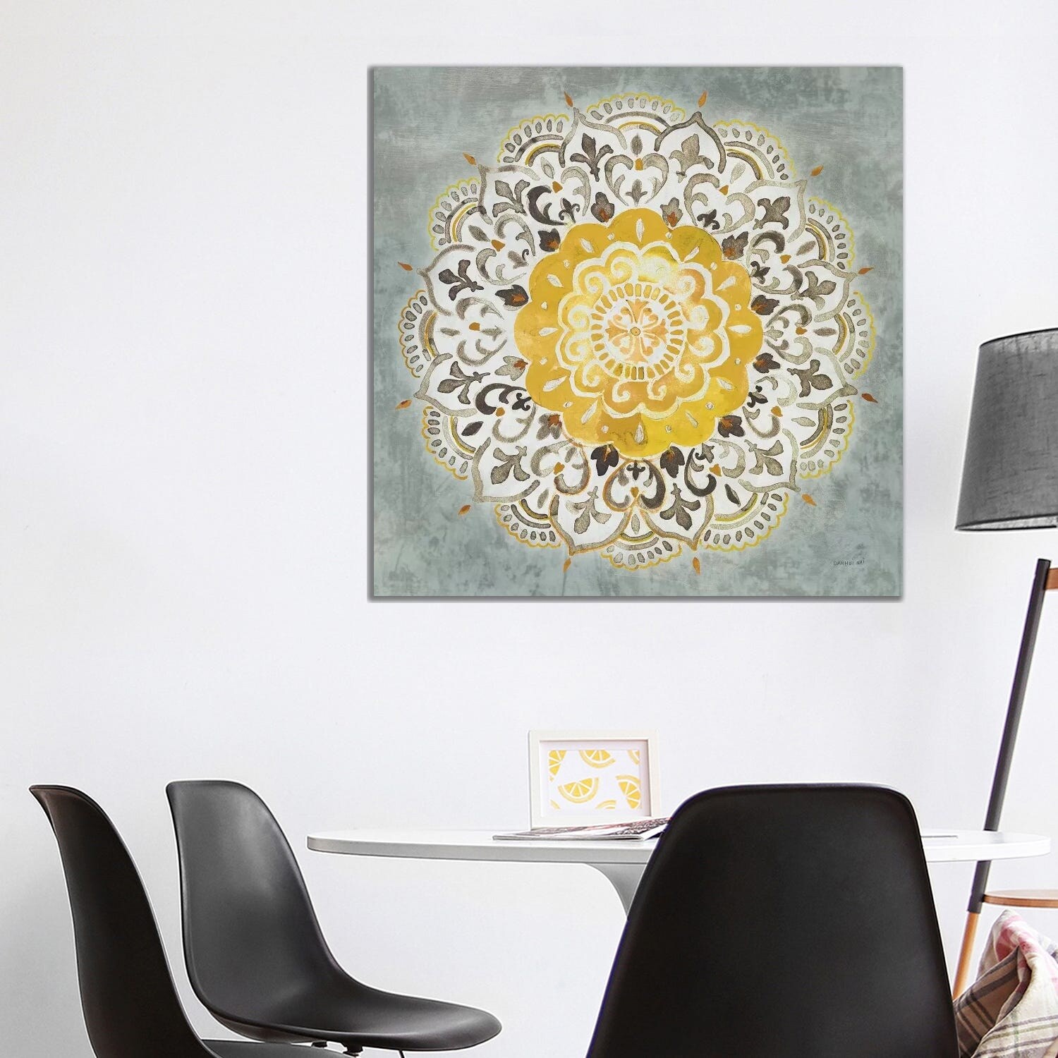 iCanvas "Mandala Delight II Yellow Gray" by Danhui Nai Framed