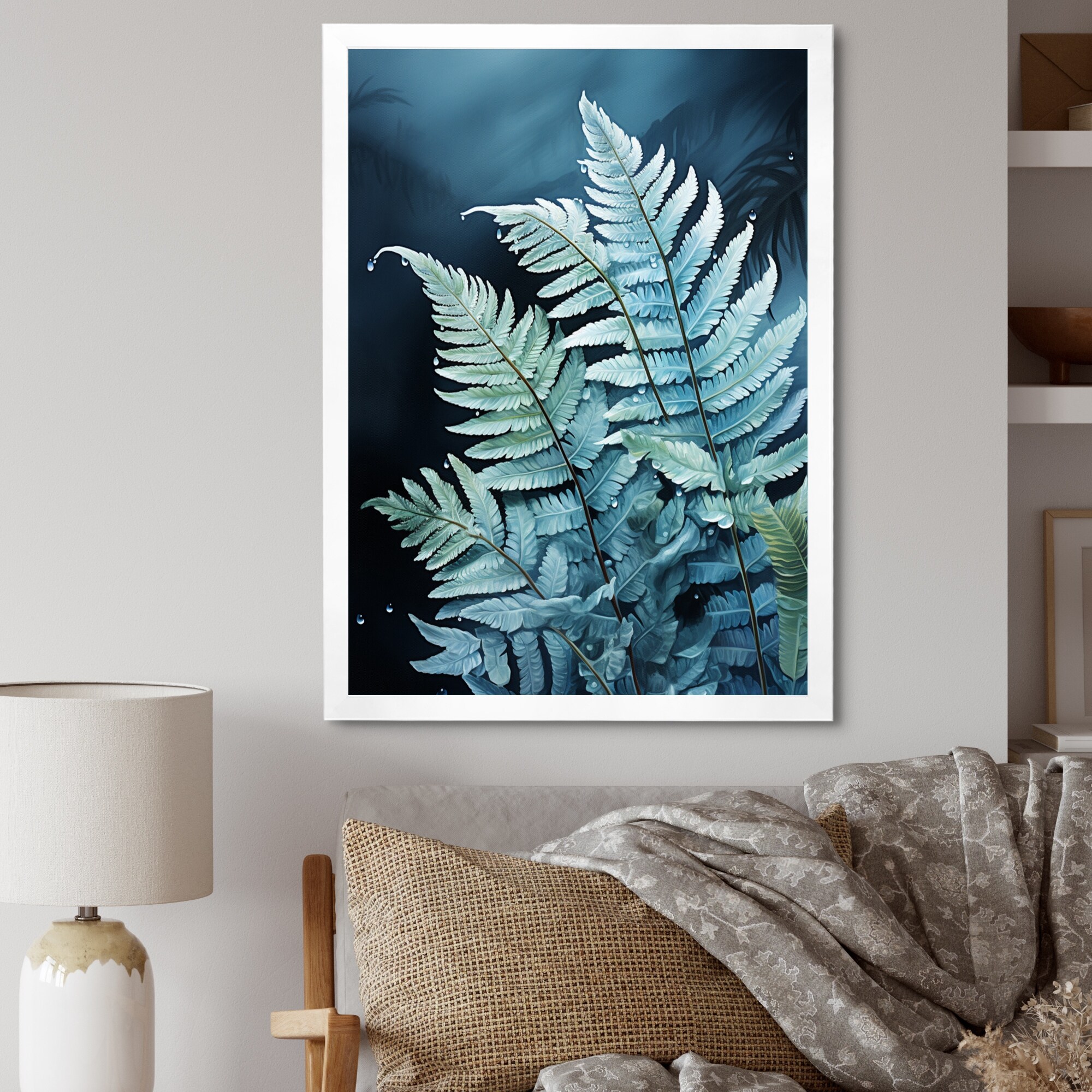 Designart "Ferns Turquoise Delight" Ferns Framed Wall Art Prints