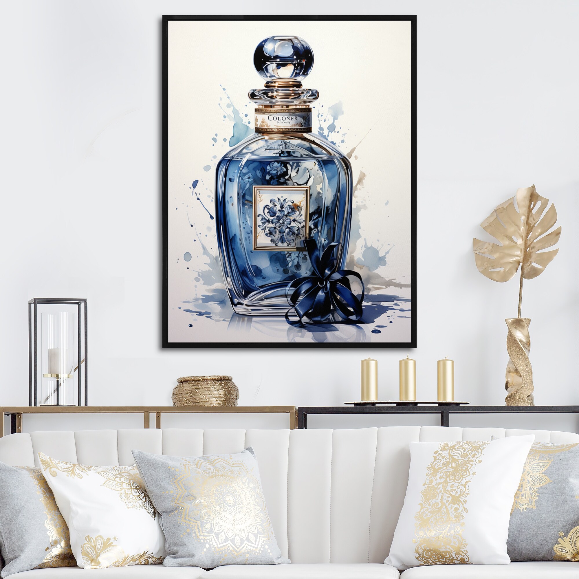 Designart "Fashion Blue Perfume Delight IV" Fashion Framed Canvas Print