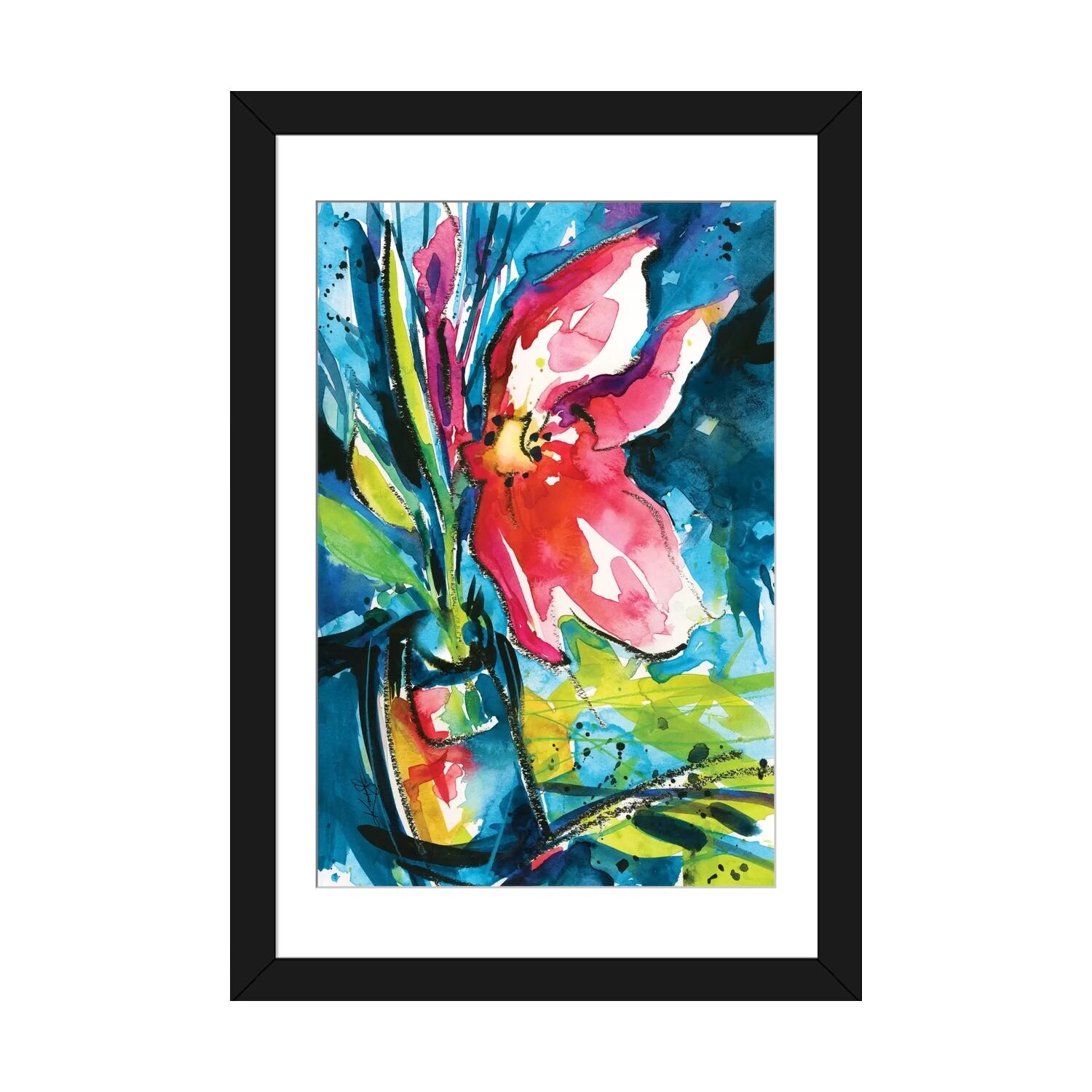 'Delighted Flower' Framed Multicolored Canvas Wall Art