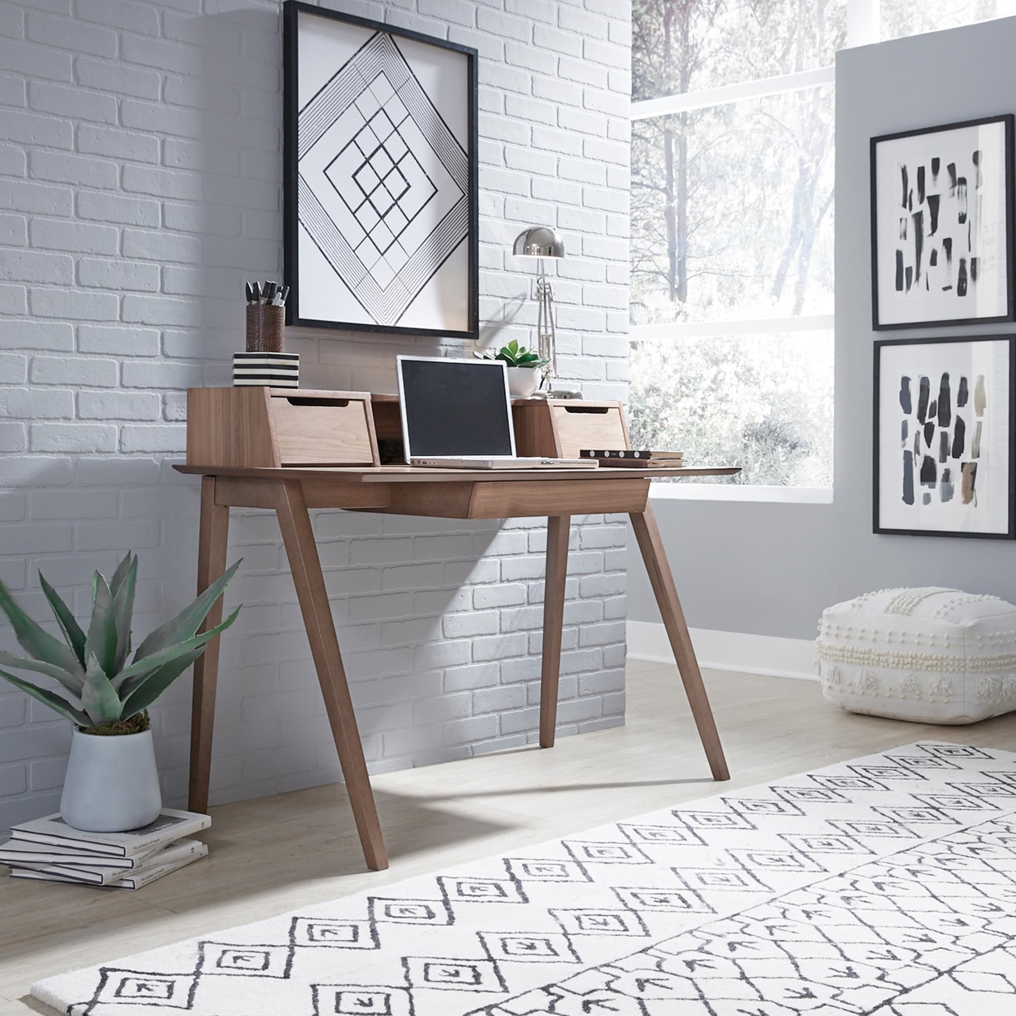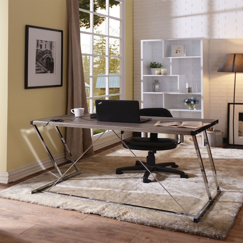 Mid Century Modern Finished Fiberboard Home Office Desk Grey Oak