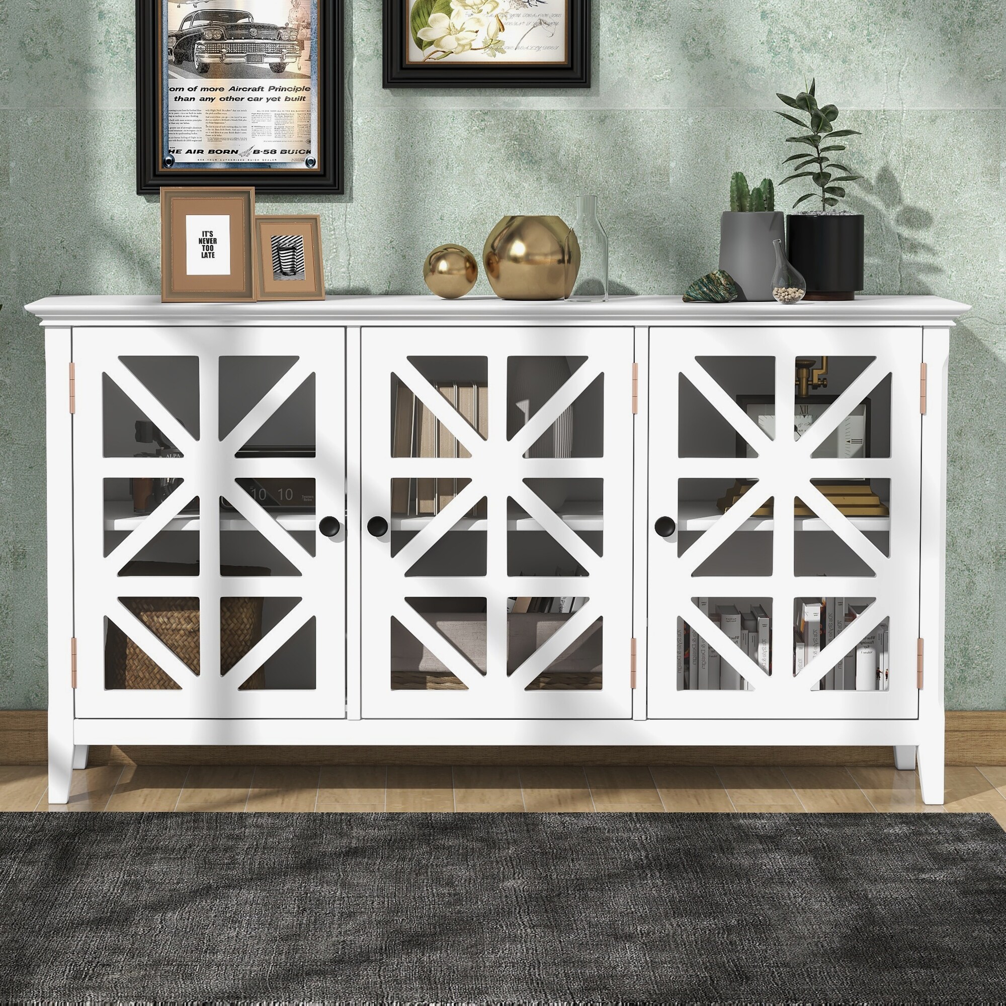62.2" Accent Cabinet Modern Console Table Sideboard for Living Room Dining Room With 3 Doors and Adjustable Shelves