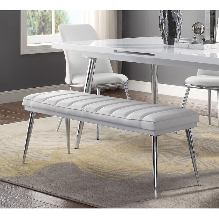Global Pronex Weizor Bench, White PU & Chrome for Living Room and Dining Room