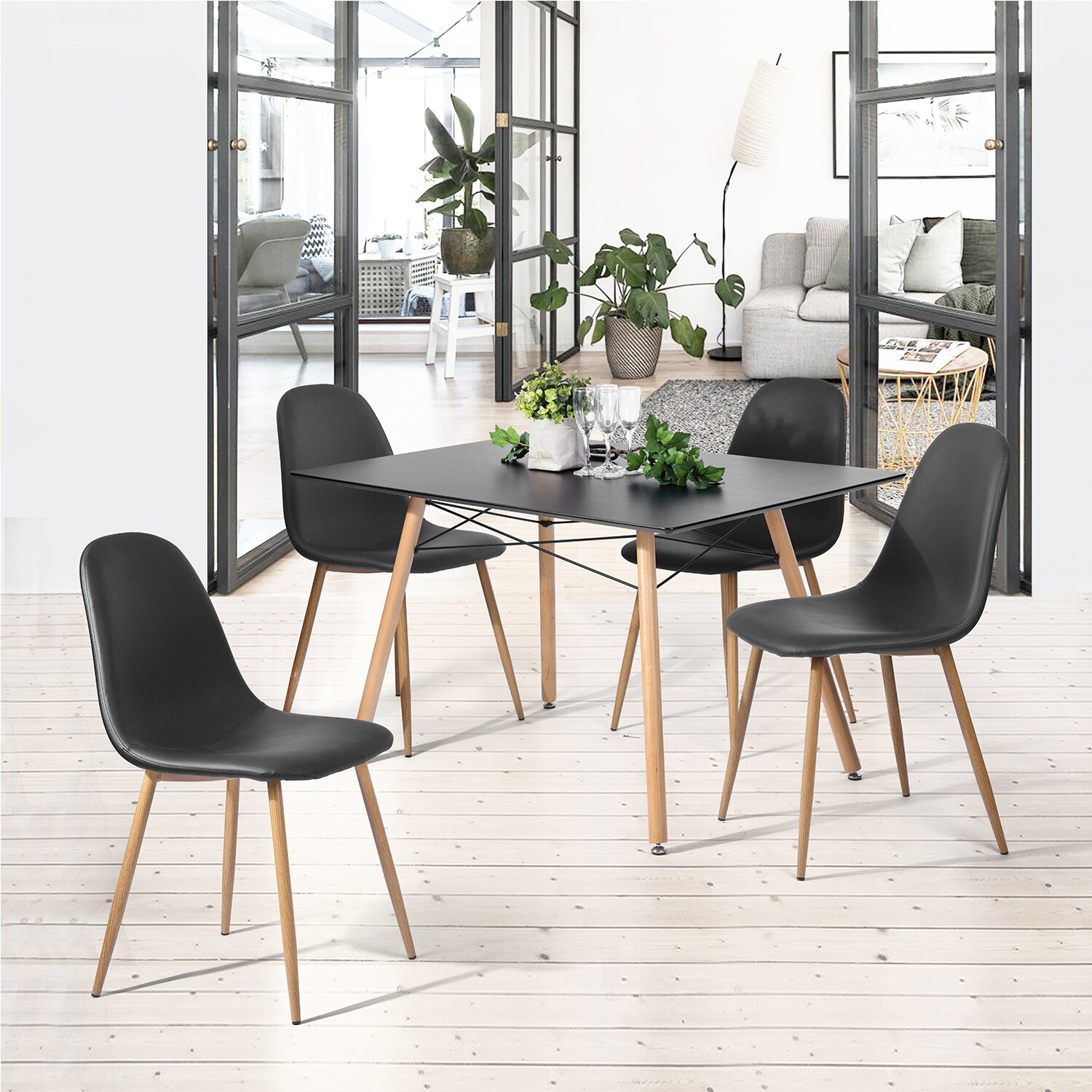 5-Piece Wood Modern Square Dining Table Furniture Set with 4 Chair for Kitchen Dining Room Dinette and Kitchen